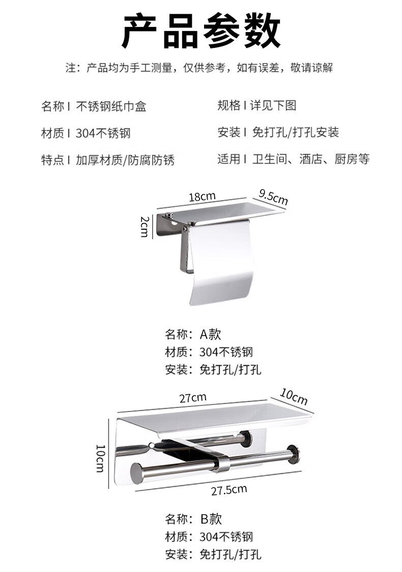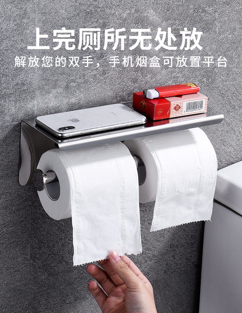 兰诗(LAUTEE) 卷纸架 B款双筒纸巾架(免打孔+打孔) TA048