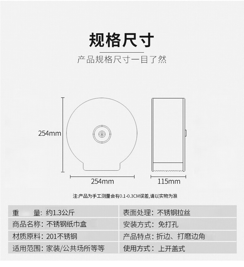 兰诗(LAUTEE) 卷纸架 加厚拉丝免打孔 TA051
