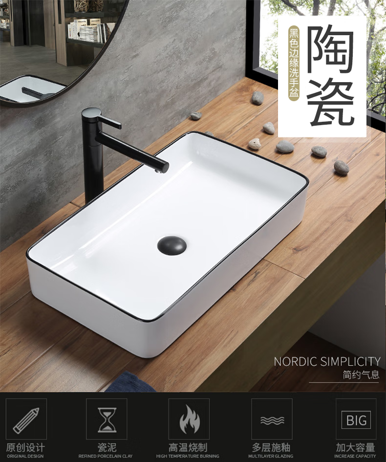 兰诗(LAUTEE) 洗手盆 E款黑边缘套装 TA263