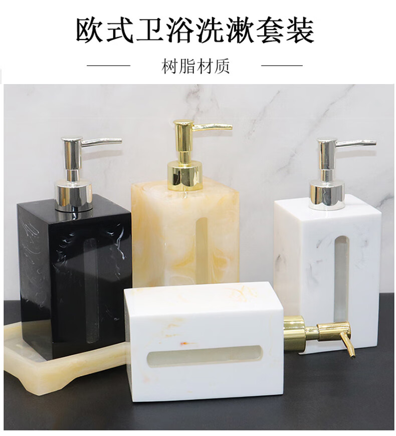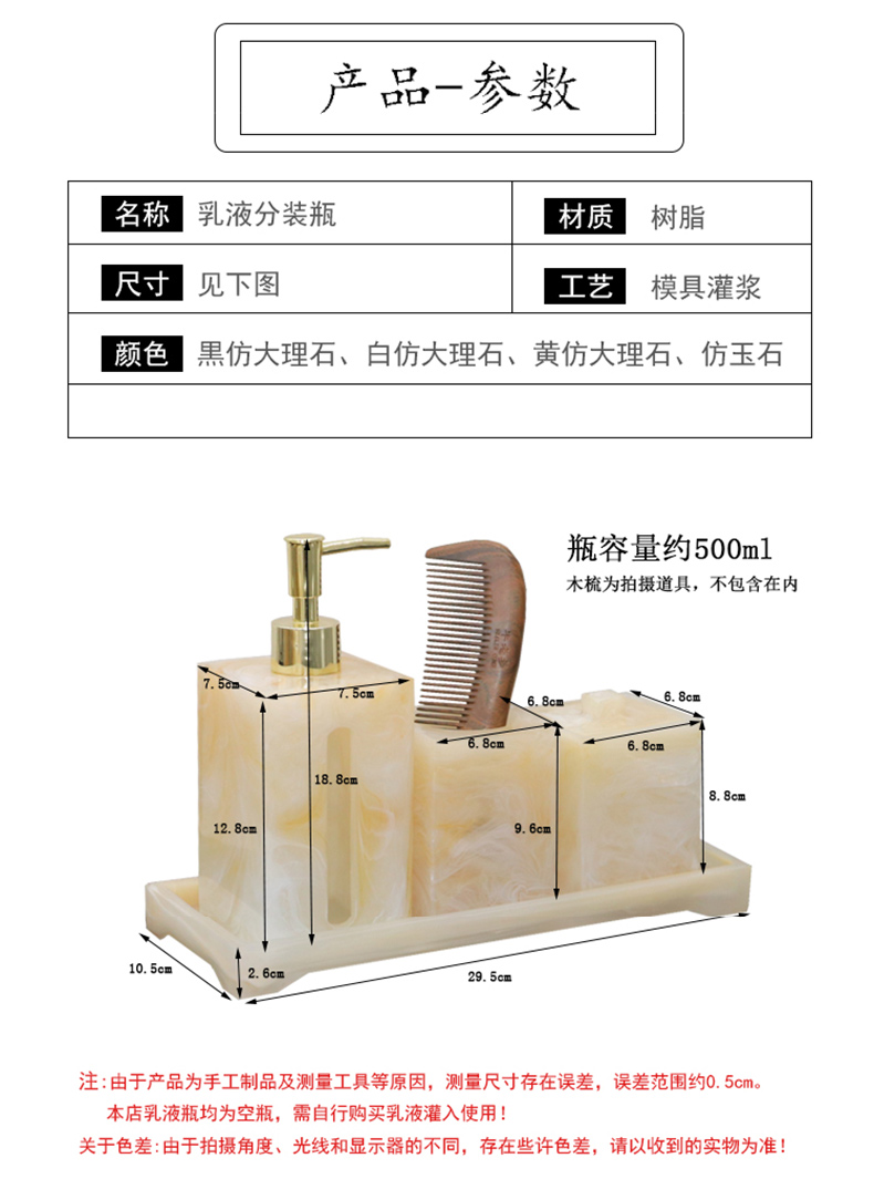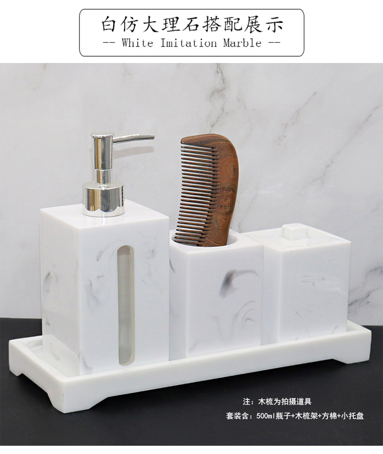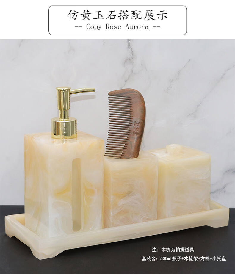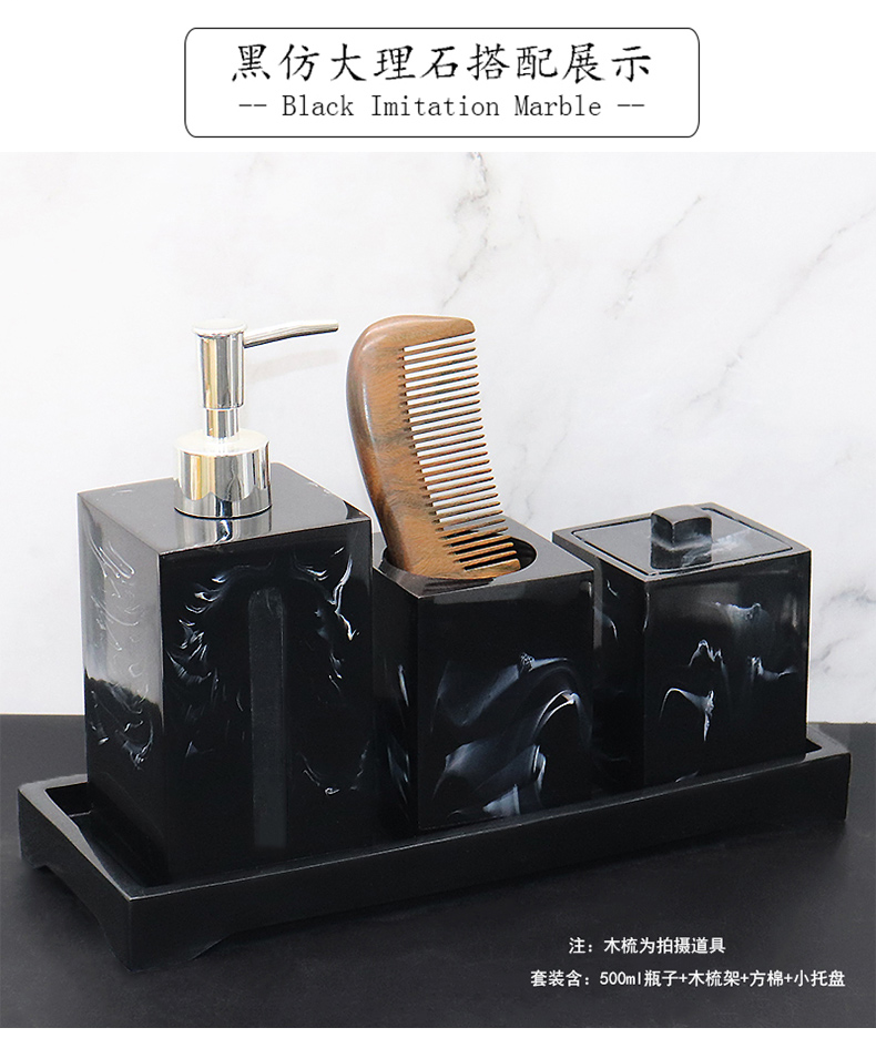 兰诗(LAUTEE) 卫浴洗手液瓶 黑仿透500ml+方棉+木梳架+小托盘带脚 TA149