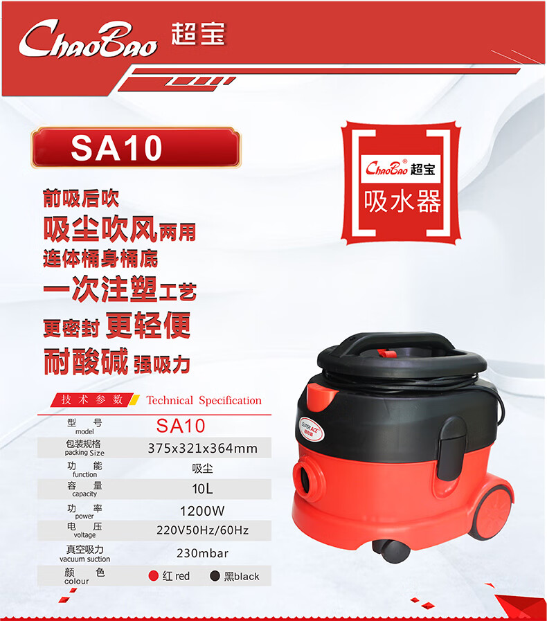 超宝 SA10 吸吹两用吸尘器办公室宾馆地毯吸尘器 10L