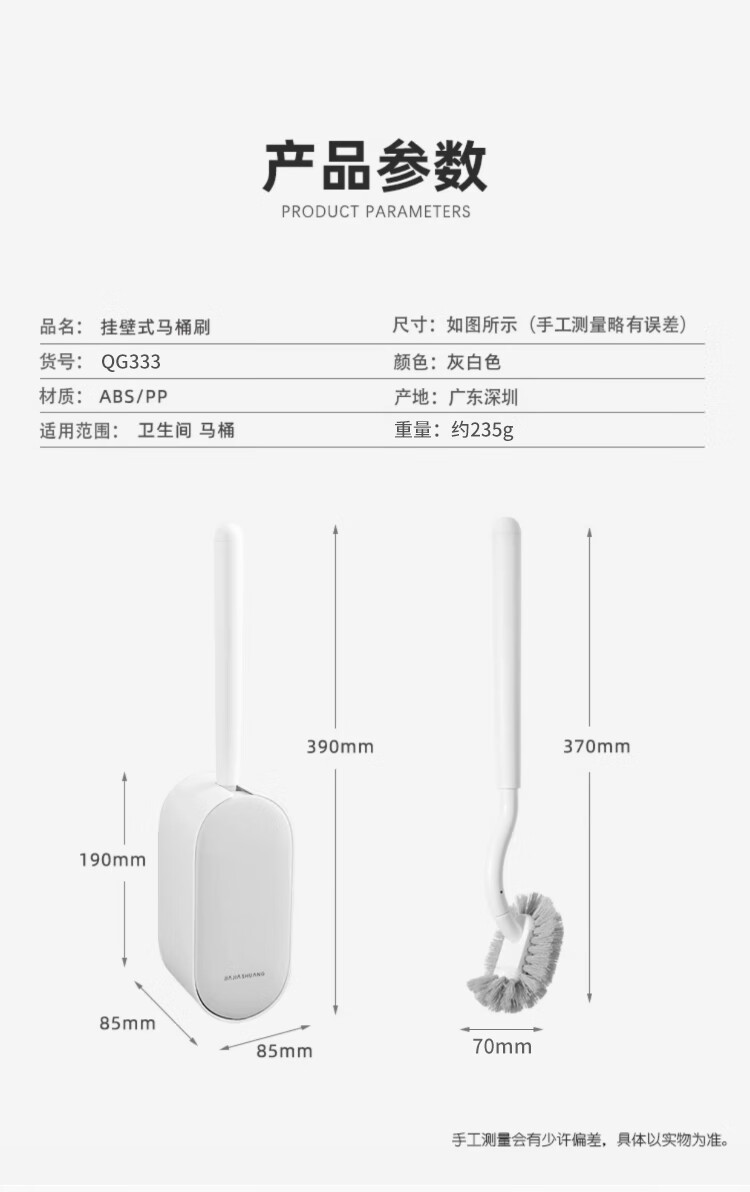 家家爽 QG333 免打孔马桶刷子壁挂式卫生间刷洗厕所无死角刷子套装