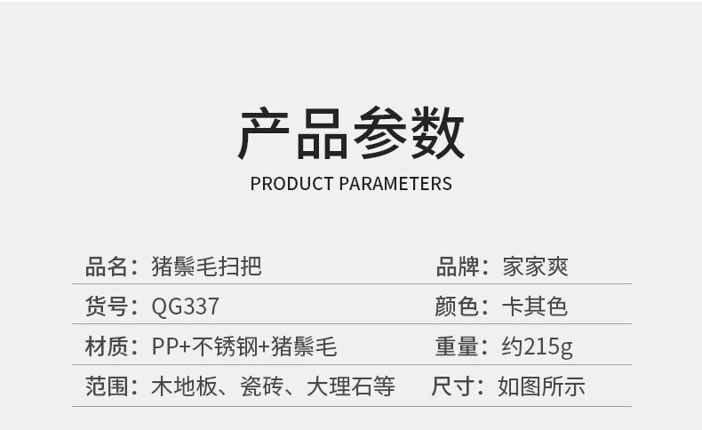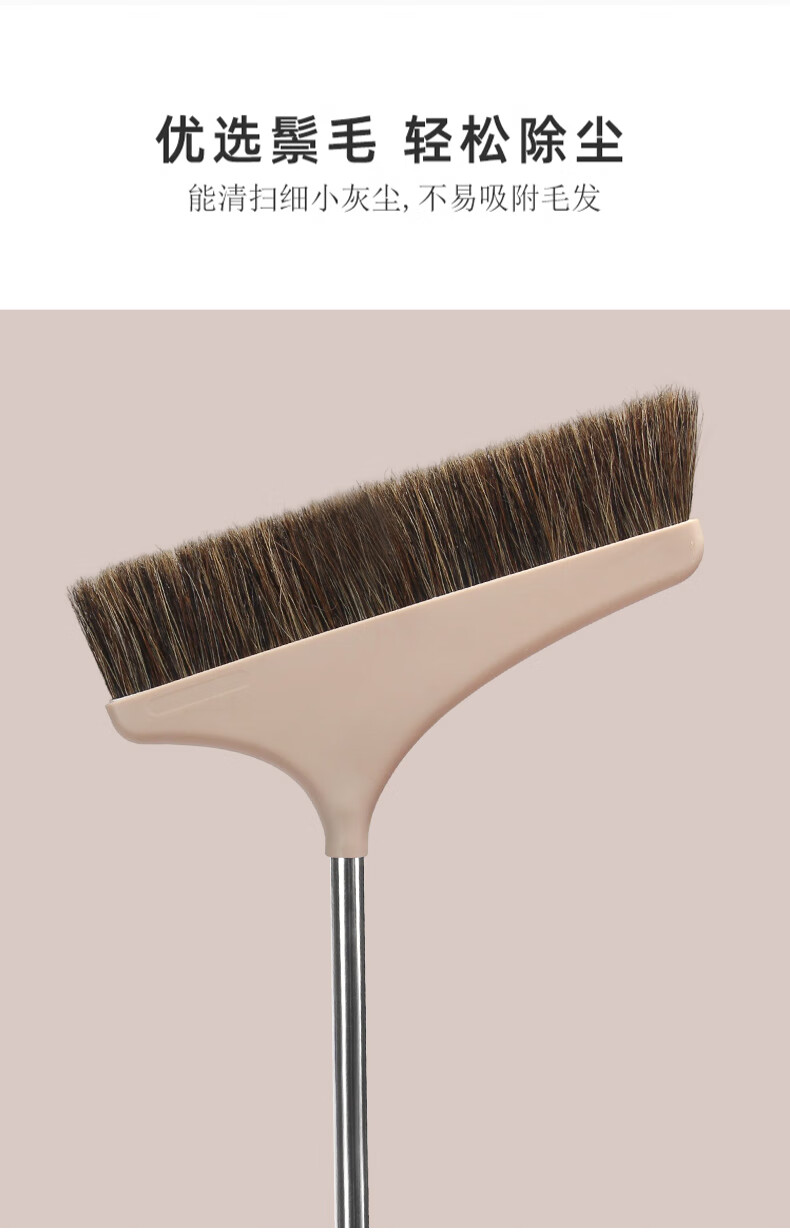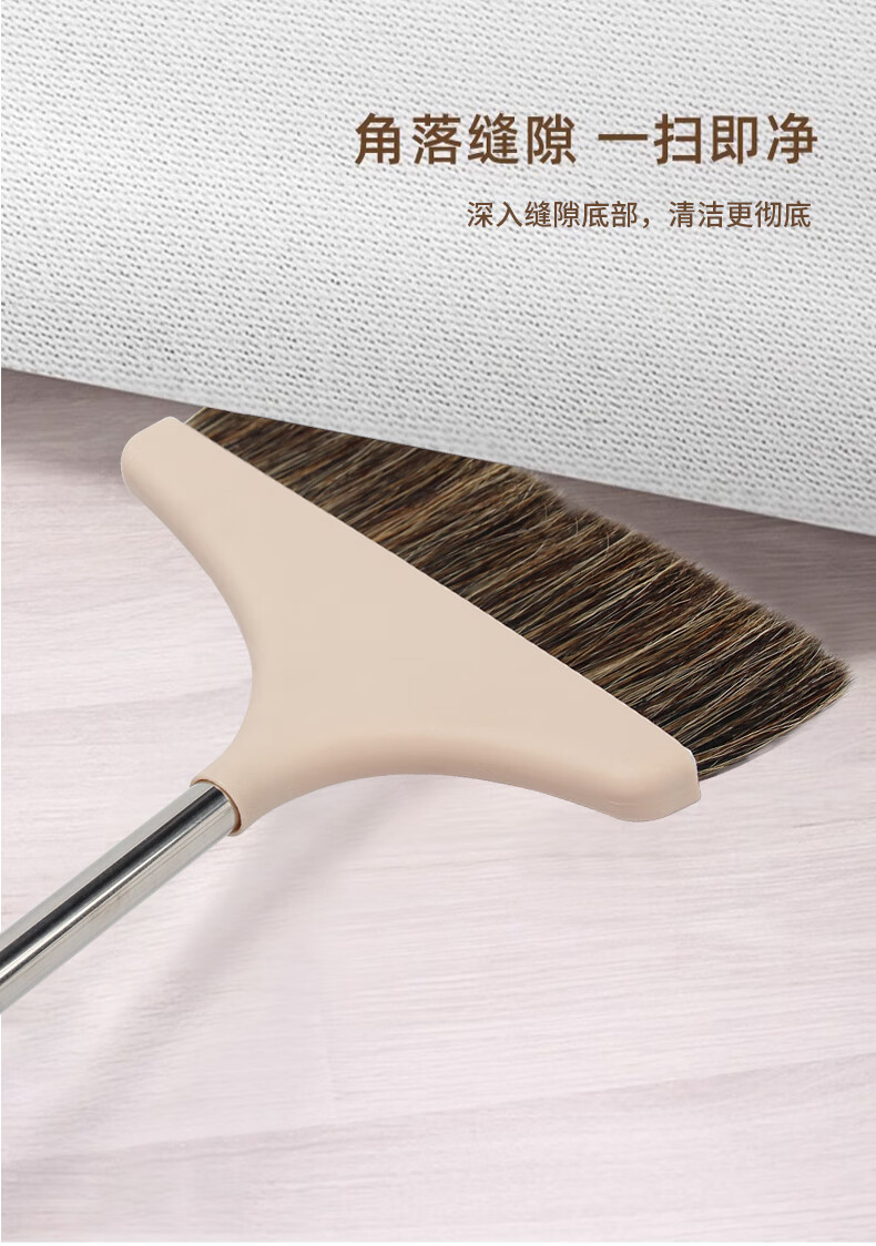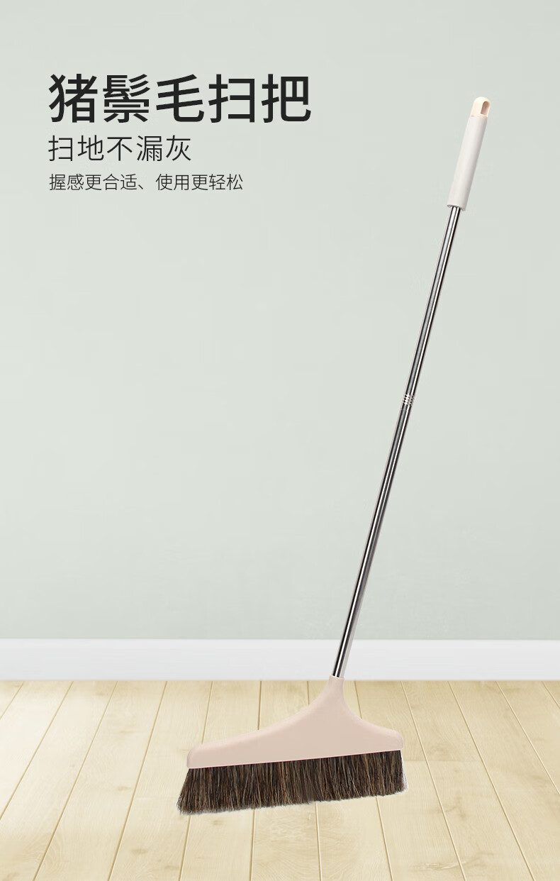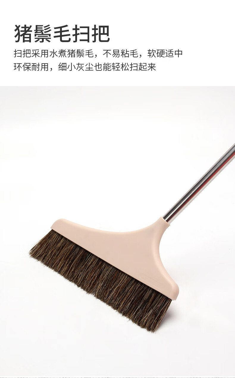 家家爽 QG337 猪鬃毛扫把不锈钢扫地扫帚 卡其色