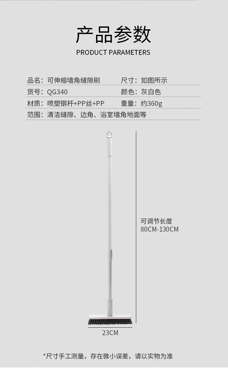 家家爽 QG340 地板刷可伸缩地缝刷卫生间刷地长柄硬毛厕所刷子