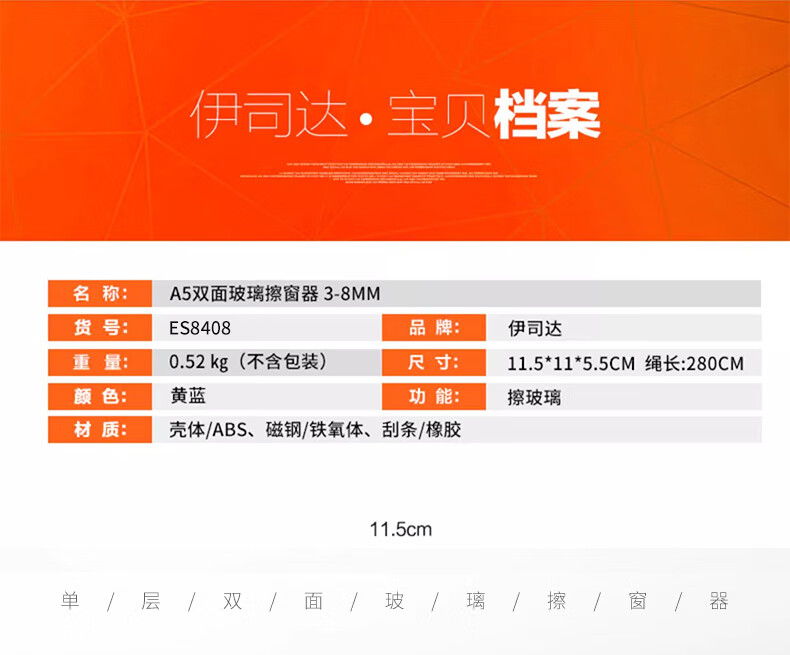 伊司达 ES8408 玻璃擦高层窗户清洁擦双面擦窗器 3-8mm单层玻璃