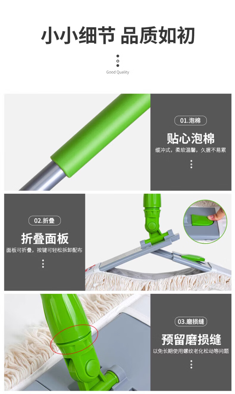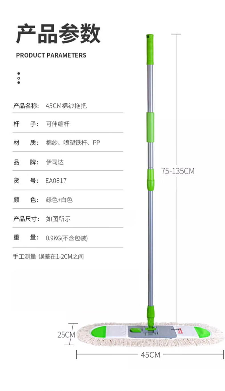 伊司达 EA0817 棉线拖把尘推墩布拖旋转平推 45CM