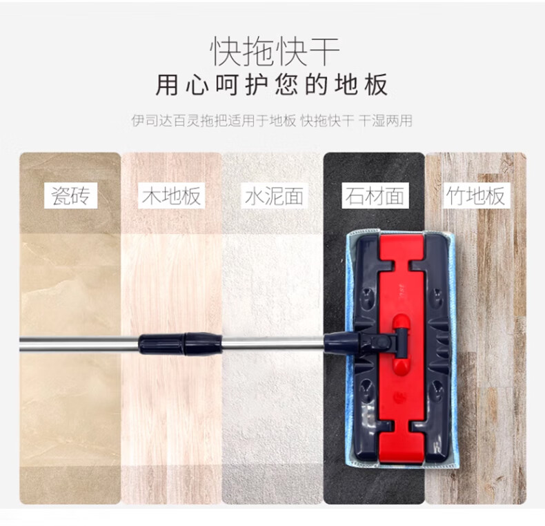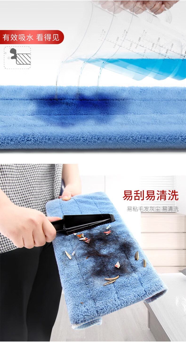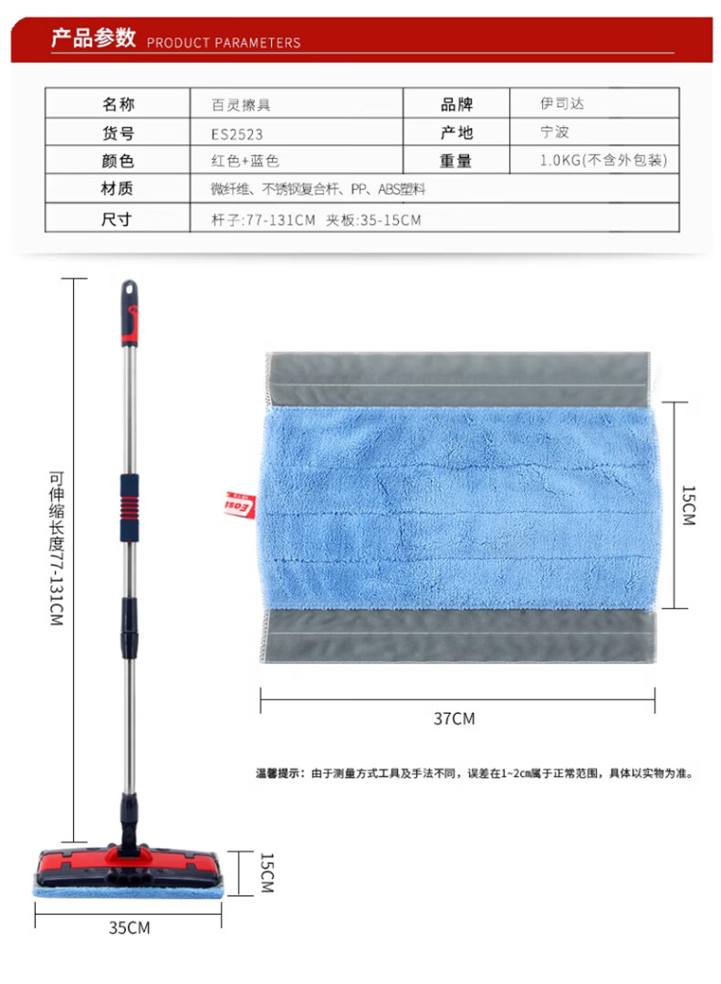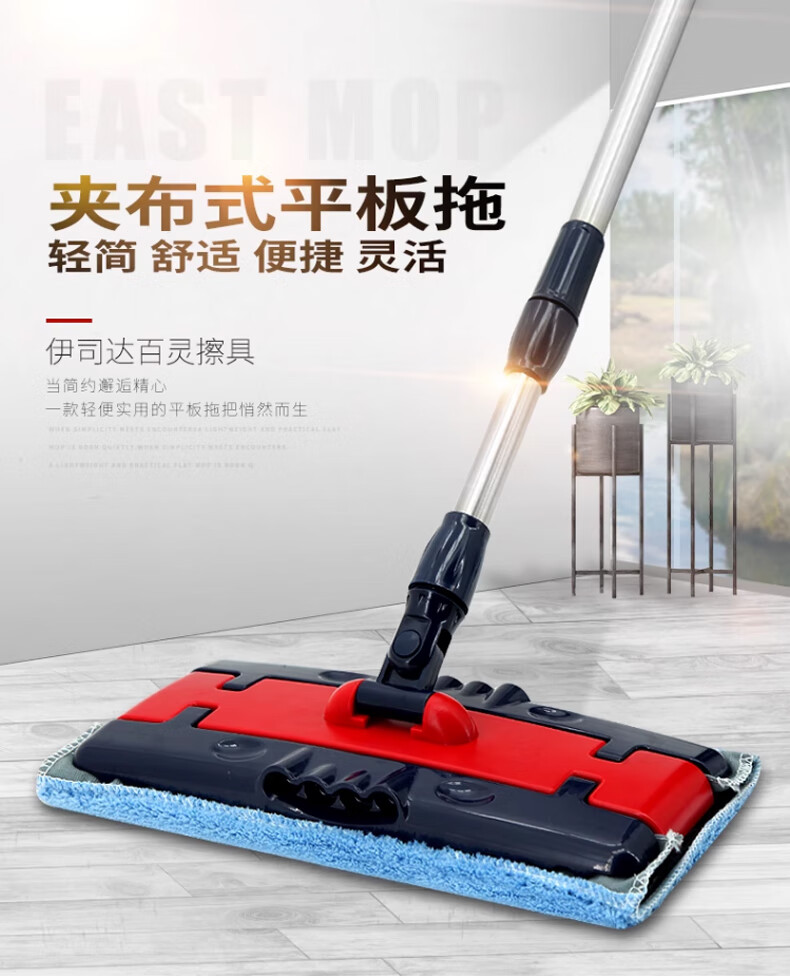 伊司达 ES2523 夹布式尘推毛巾布平板拖把地拖墩布平拖 35CM