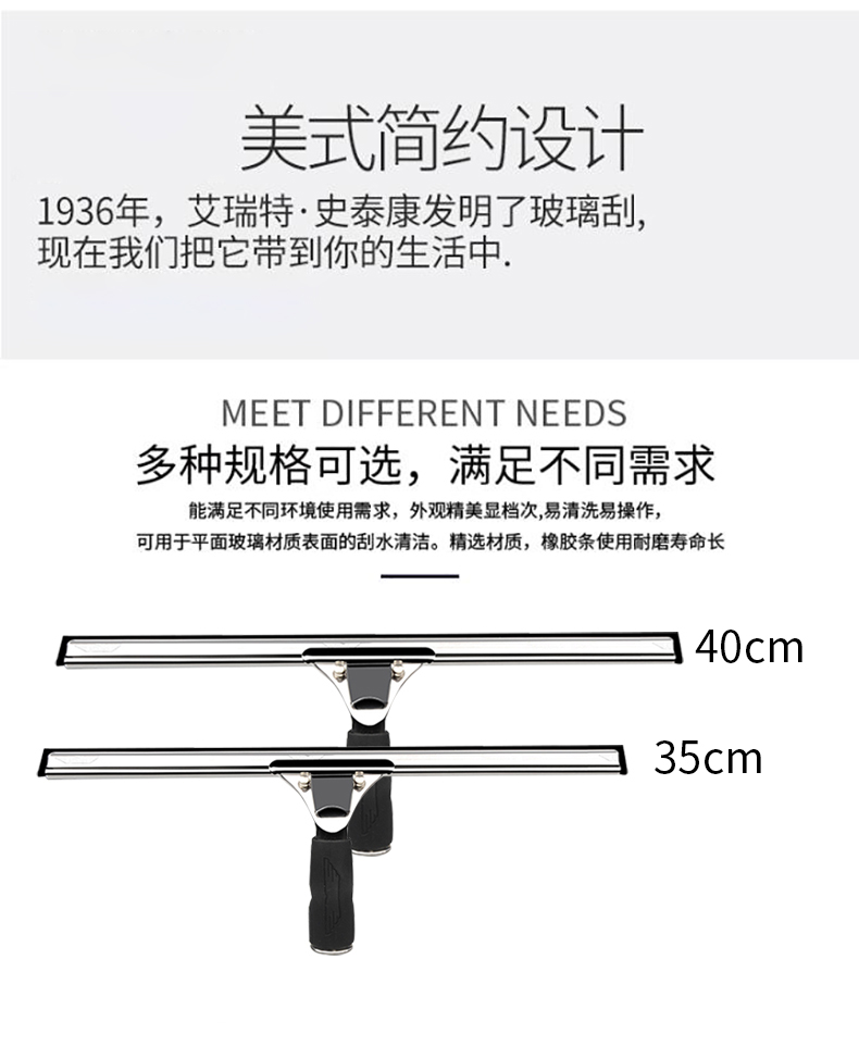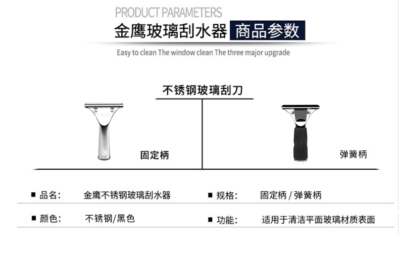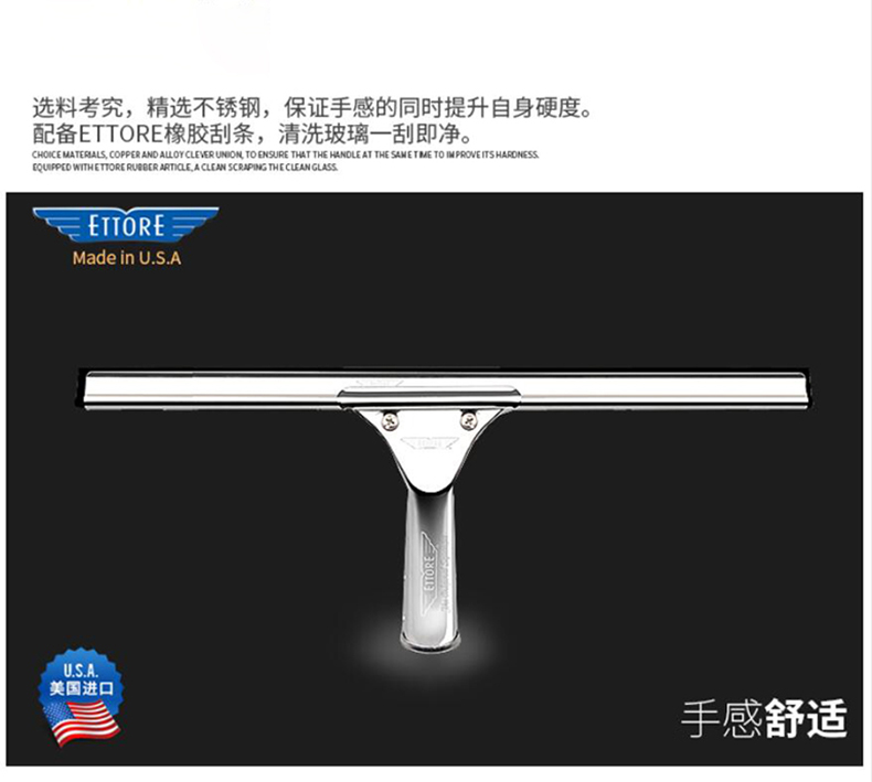 ETTORE 1329 金鹰不锈钢玻璃刮刀窗户刮水器地板清洁刮刮水器 不锈钢固定手柄