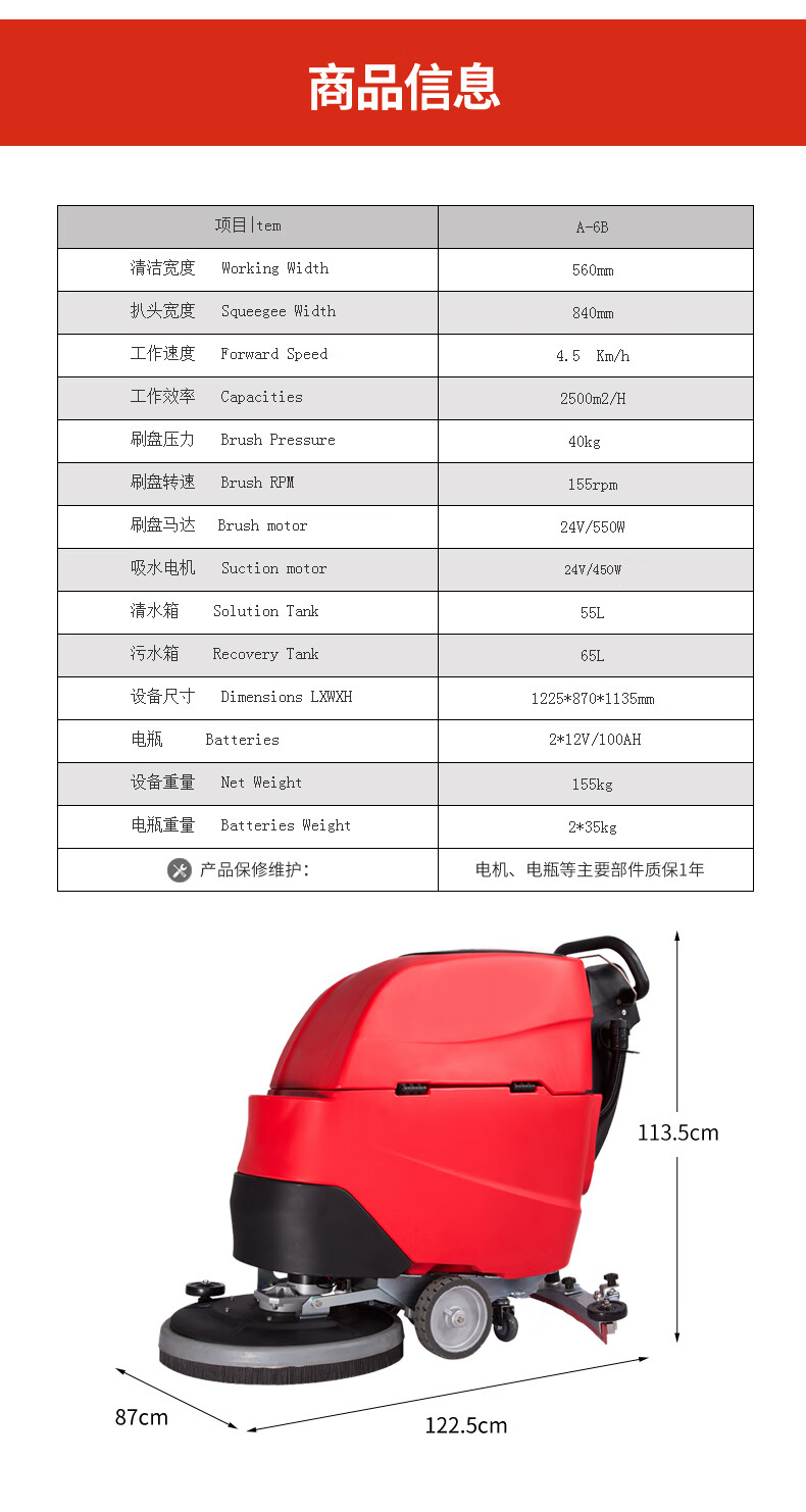 纳仕德 手推式洗地机 A-6B 全配款 ND175