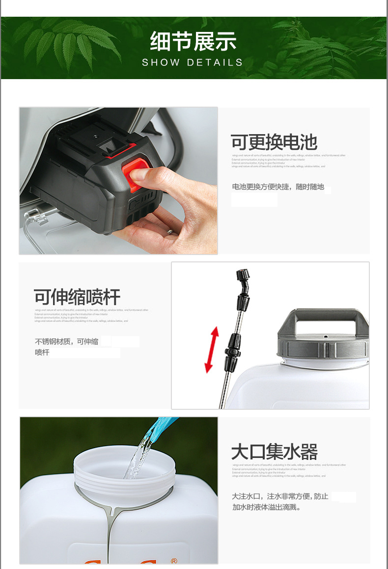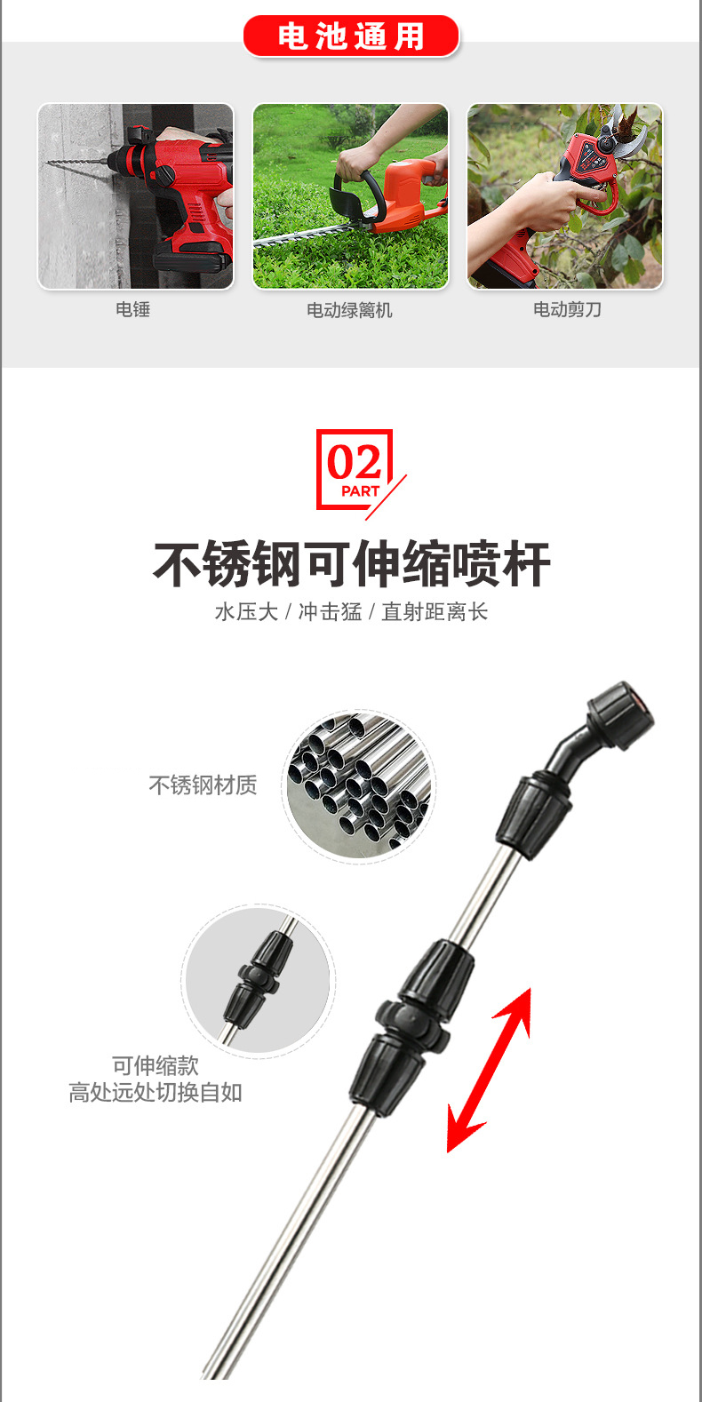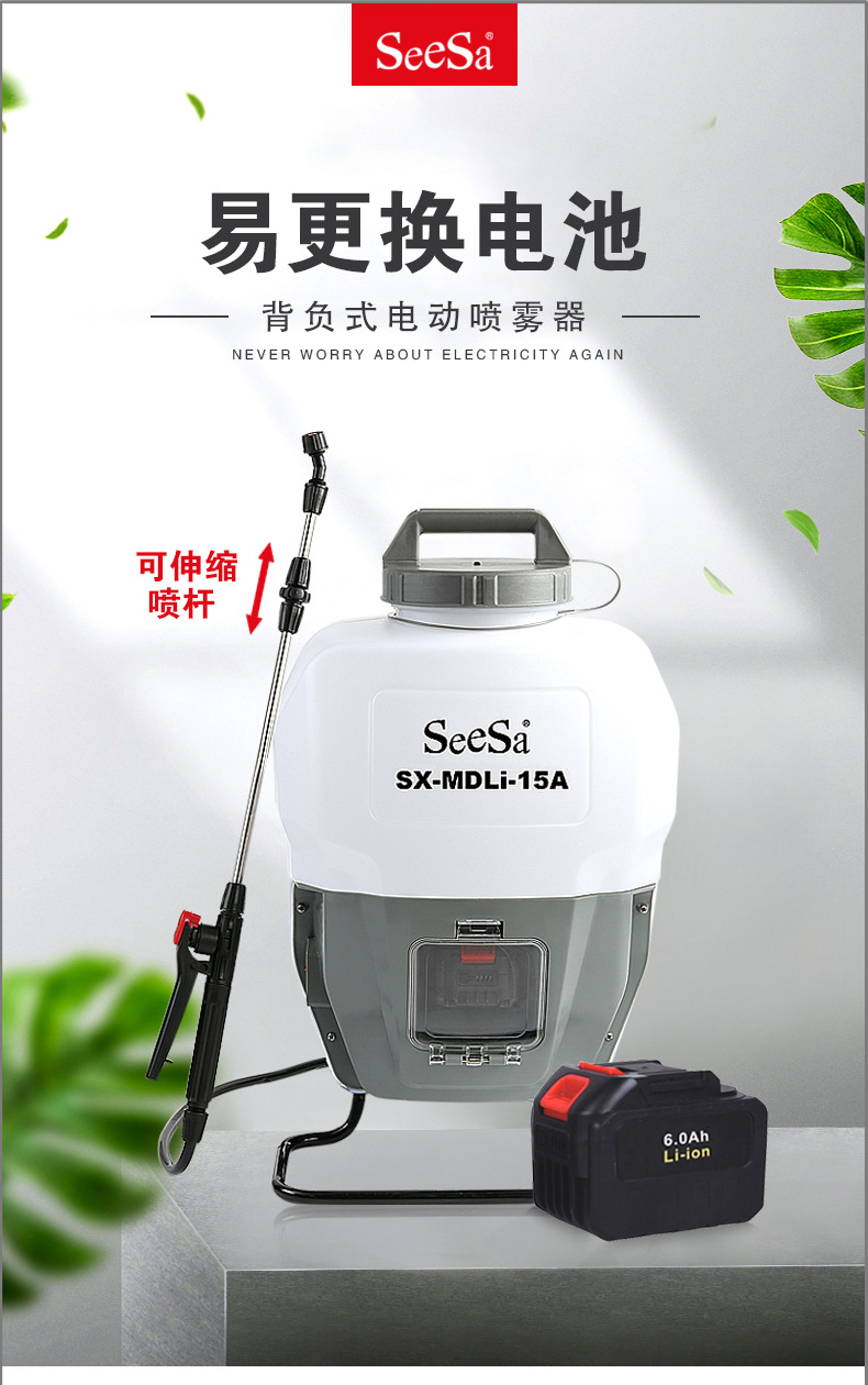市下 SX-MDLI-15A 电动喷雾器园林果园打药机喷雾机农用锂电池加长伸缩杆 15L