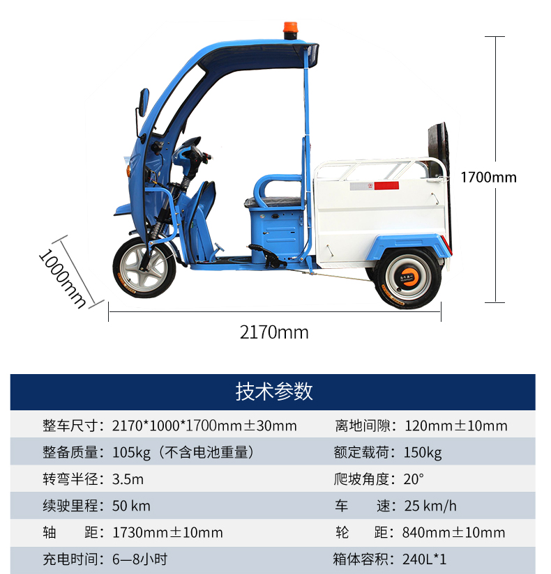 纳仕德 电动三轮清洁车 500L塑料桶 ND122