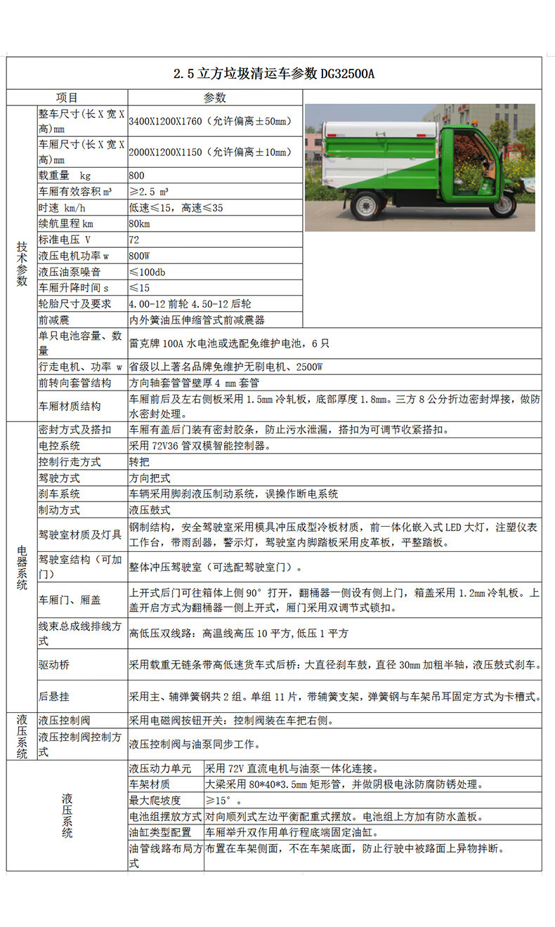 纳仕德 电动三轮清洁车 2.5方铁箱 DG32500A ND135