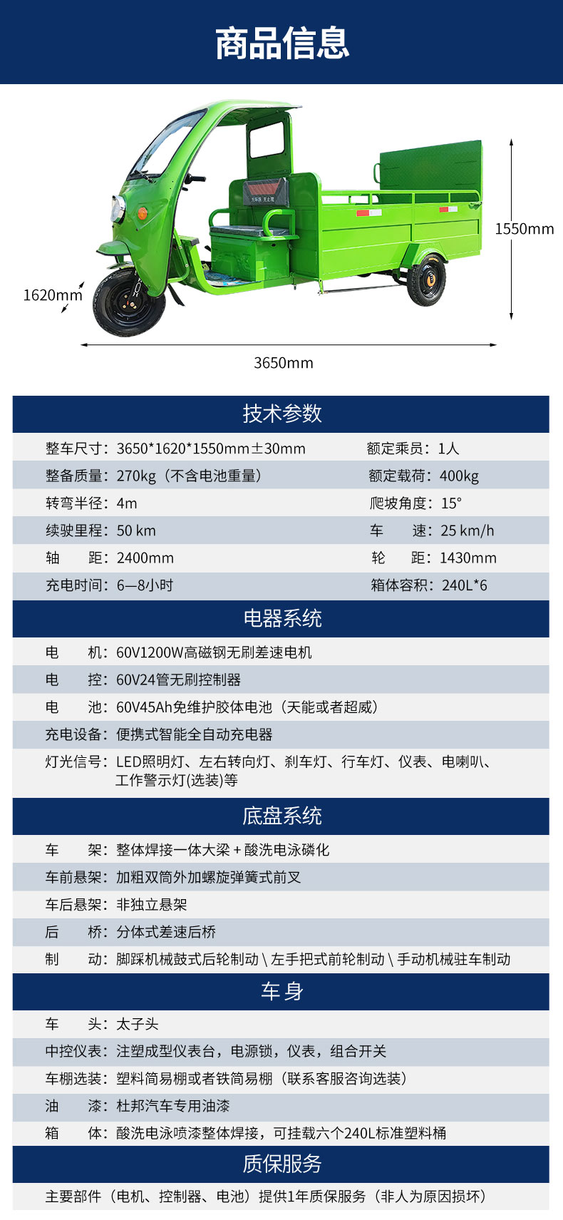 纳仕德 电动三轮清洁车 平板款 可配6个240L ND139