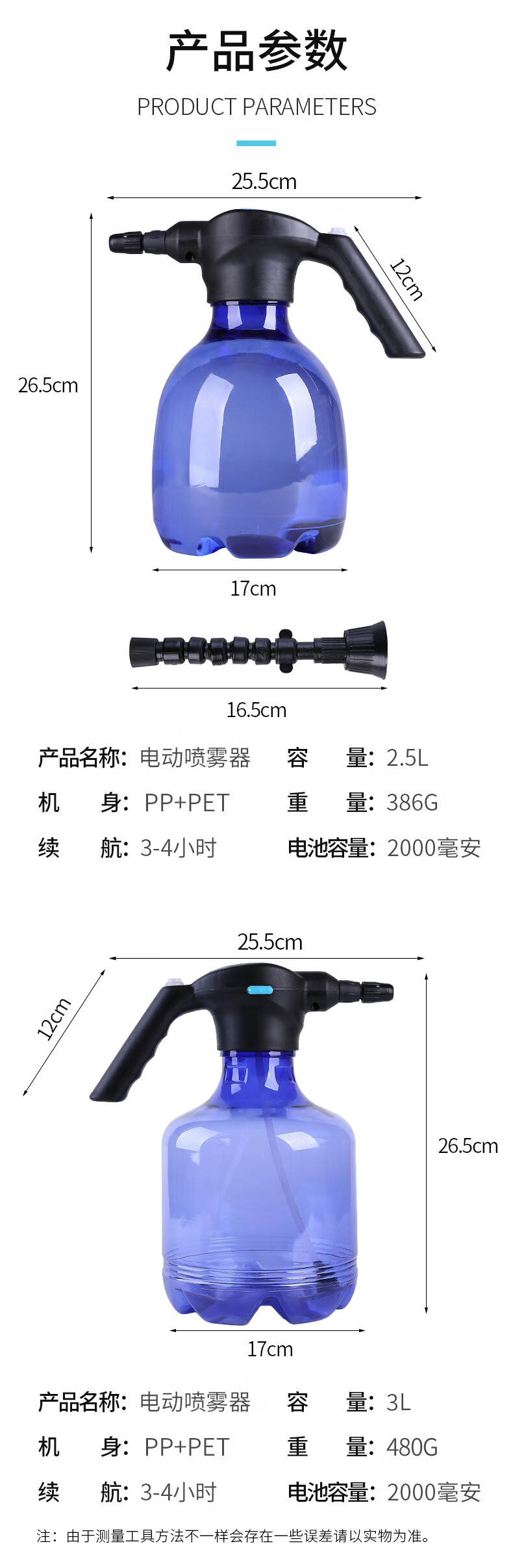 纳仕德 电动喷水壶 2.5L黑头紫色+万向喷头 ND283