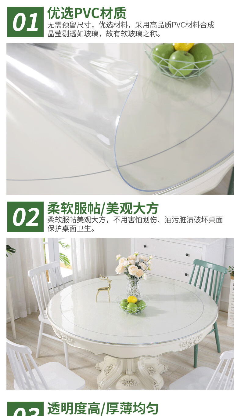 兰诗 ( LAUTEE) 软玻璃圆桌垫可裁剪PVC台布茶几垫水晶板 直径100cm/2mm厚 MA393