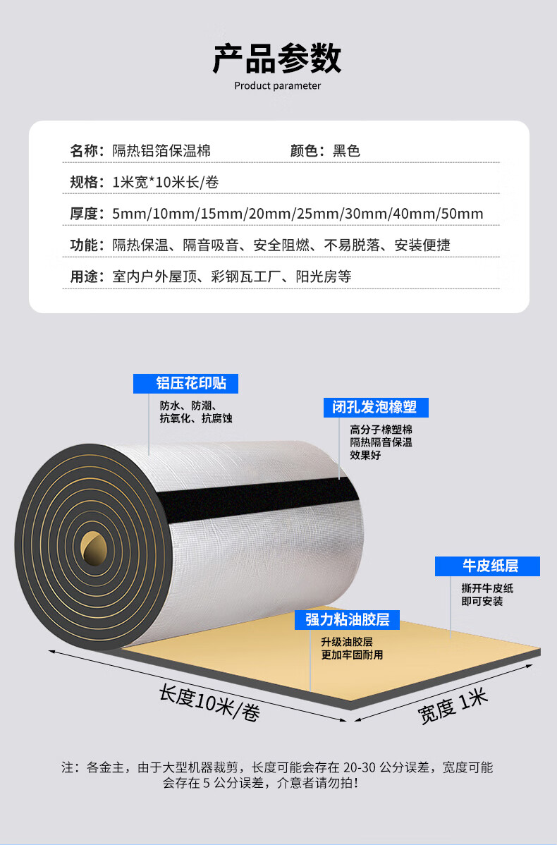 兰诗 ( LAUTEE) 隔热棉板保温棉铝箔隔热板1平方米 5mm厚 MA413