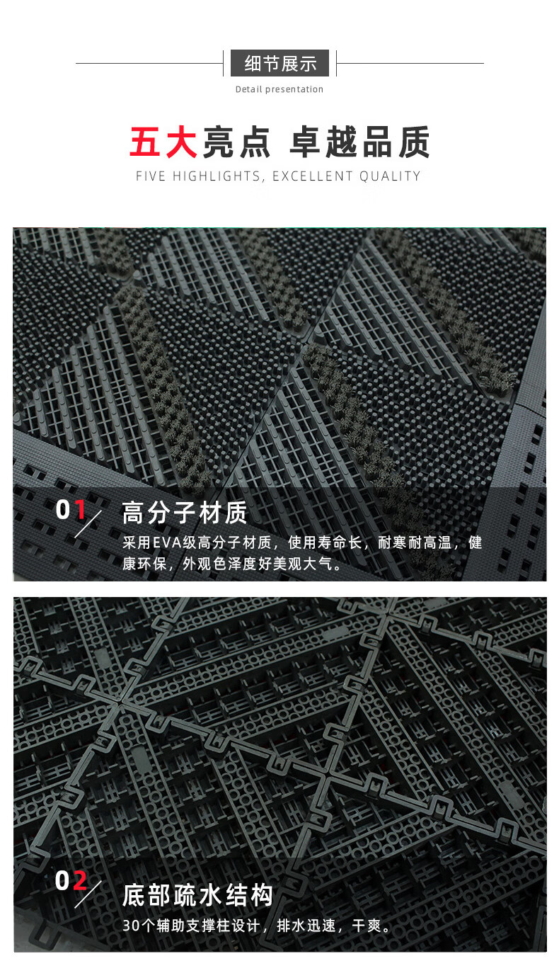 兰诗 ( LAUTEE) 三合一地垫镂空接拼地毯酒店公司商场防滑脚垫 75*150cm MA465