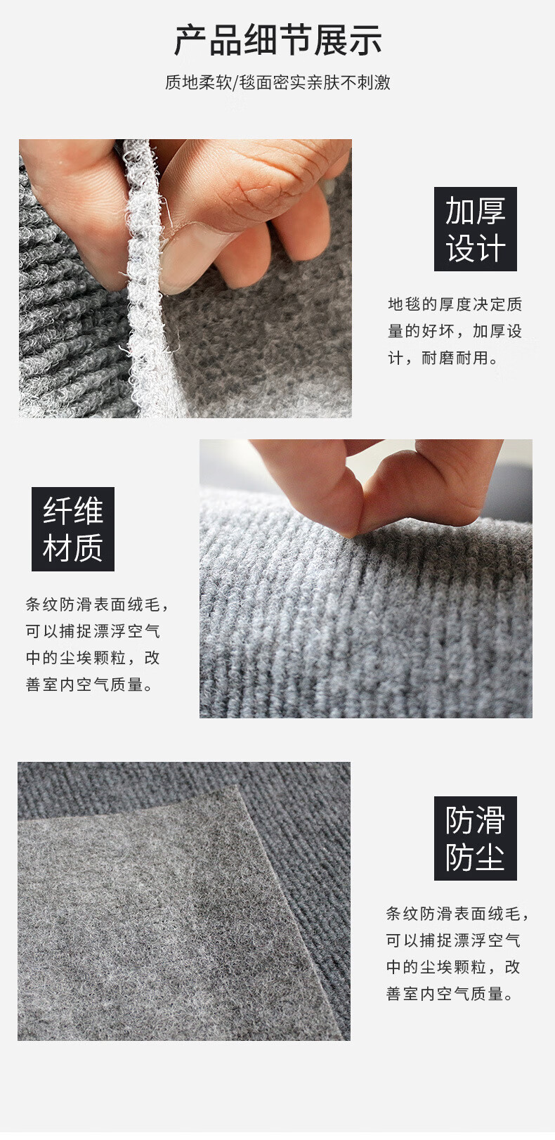 兰诗 ( LAUTEE) 全铺地毯商用办公室耐脏细条纹地垫 浅灰厚5mm 1.5米宽(需要几米长拍几件)整块发 MA622