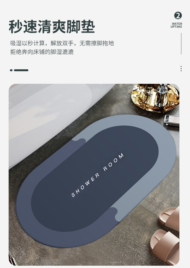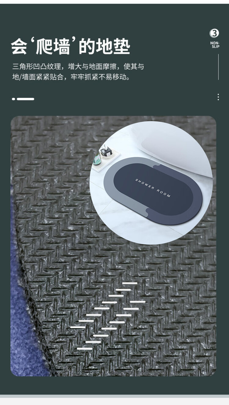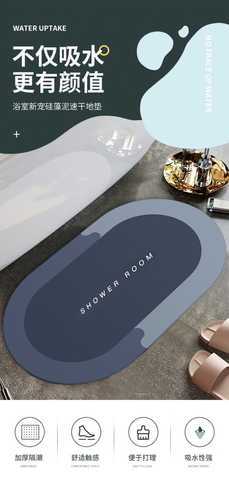 兰诗 ( LAUTEE) 硅藻泥地垫浴室门口吸水软垫地毯防滑脚垫 椭圆粉 40*60cm厚2.5mm MA638