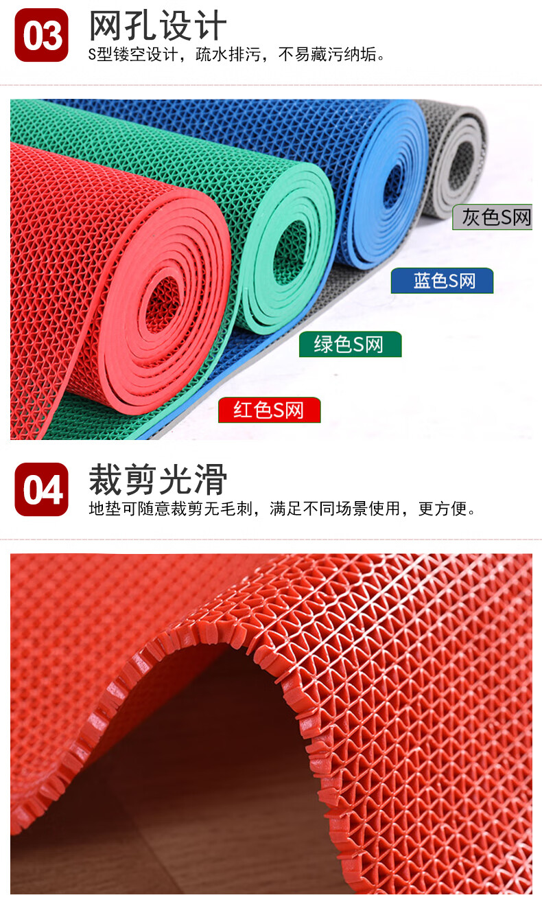 兰诗 ( LAUTEE) PVC镂空防滑地垫浴室厕所厨房地毯脚垫 灰色加密6mm1.2米宽1米长 MA214