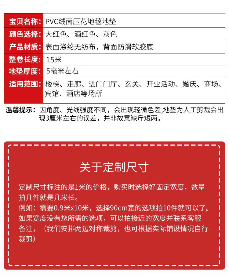兰诗 ( LAUTEE) PVC压花地毯酒店走廊迎宾整铺耐脏防滑地垫 酒红色200cm*15米整卷 MA744