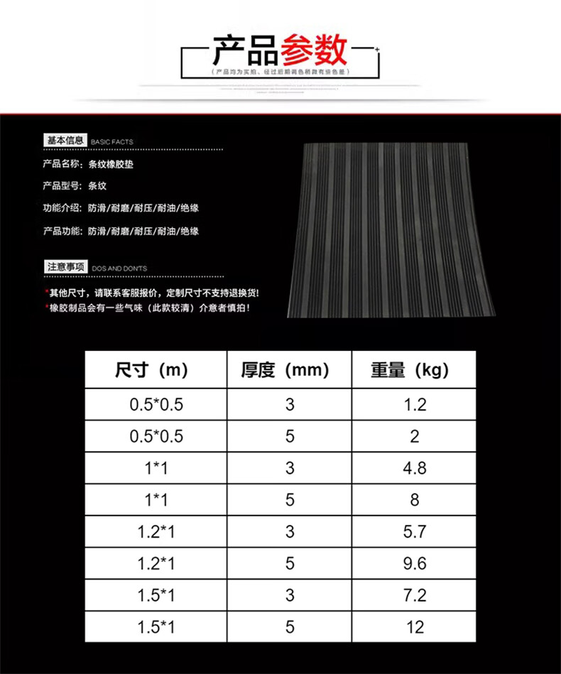 兰诗( LAUTEE) MA780 橡胶板条纹防滑橡胶垫减震耐磨耐撕橡胶皮 0.5*0.5m*5mm