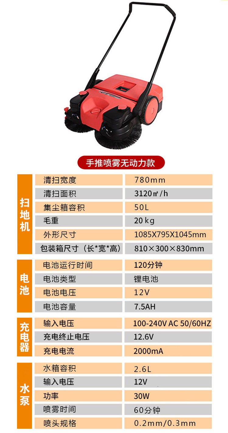 纳仕德 手推式扫地机 JL780E 电动喷雾标准款 ND162