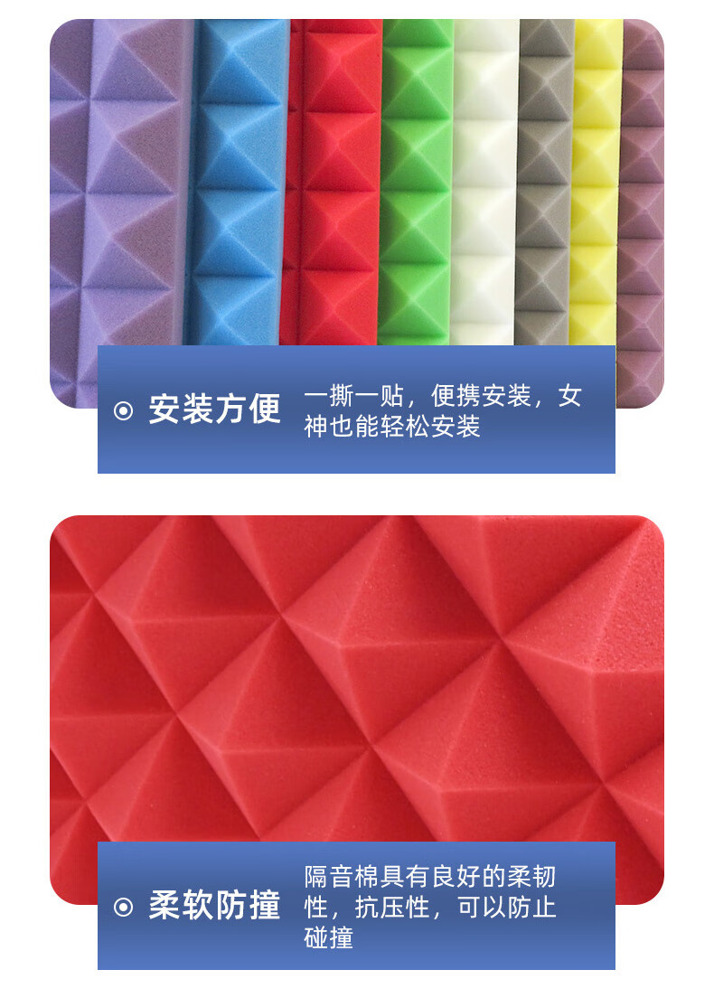 兰诗 ( LAUTEE) 吸音棉自粘墙贴消音棉防火隔音棉 50*50*5cm高密度阻燃带背胶(8塔尖) MA556