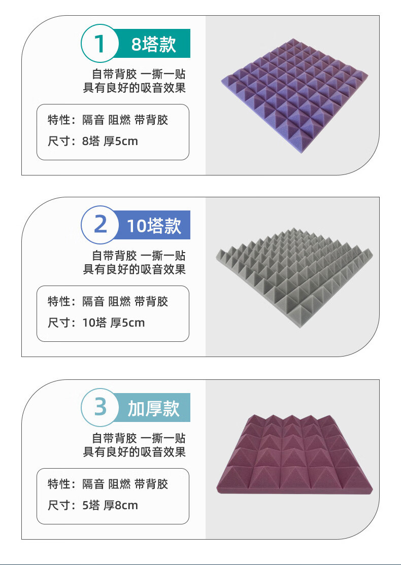 兰诗 ( LAUTEE) 吸音棉自粘墙贴消音棉防火隔音棉 50*50*5cm高密度阻燃带背胶(10塔尖) MA558