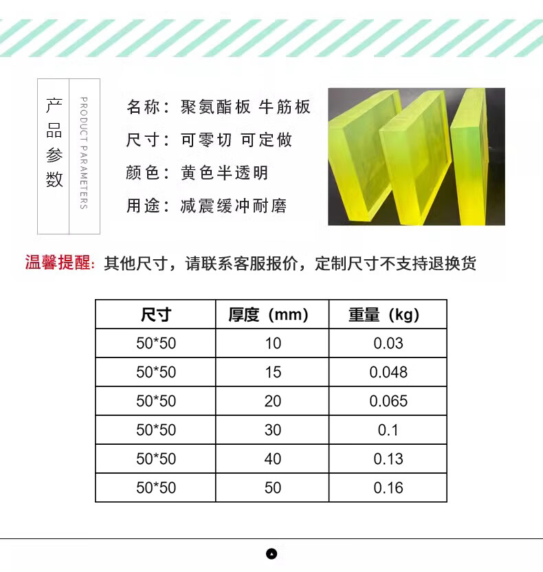 兰诗( LAUTEE) MA830 橡胶皮聚氨酯板牛筋垫板防撞减震耐磨胶板 50*50*30mm