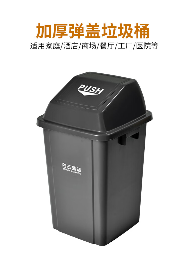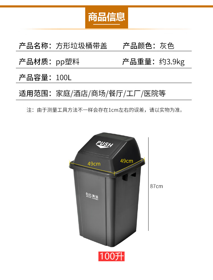 白云清洁 方形带盖垃圾桶 AF07313 灰色 100L 1个