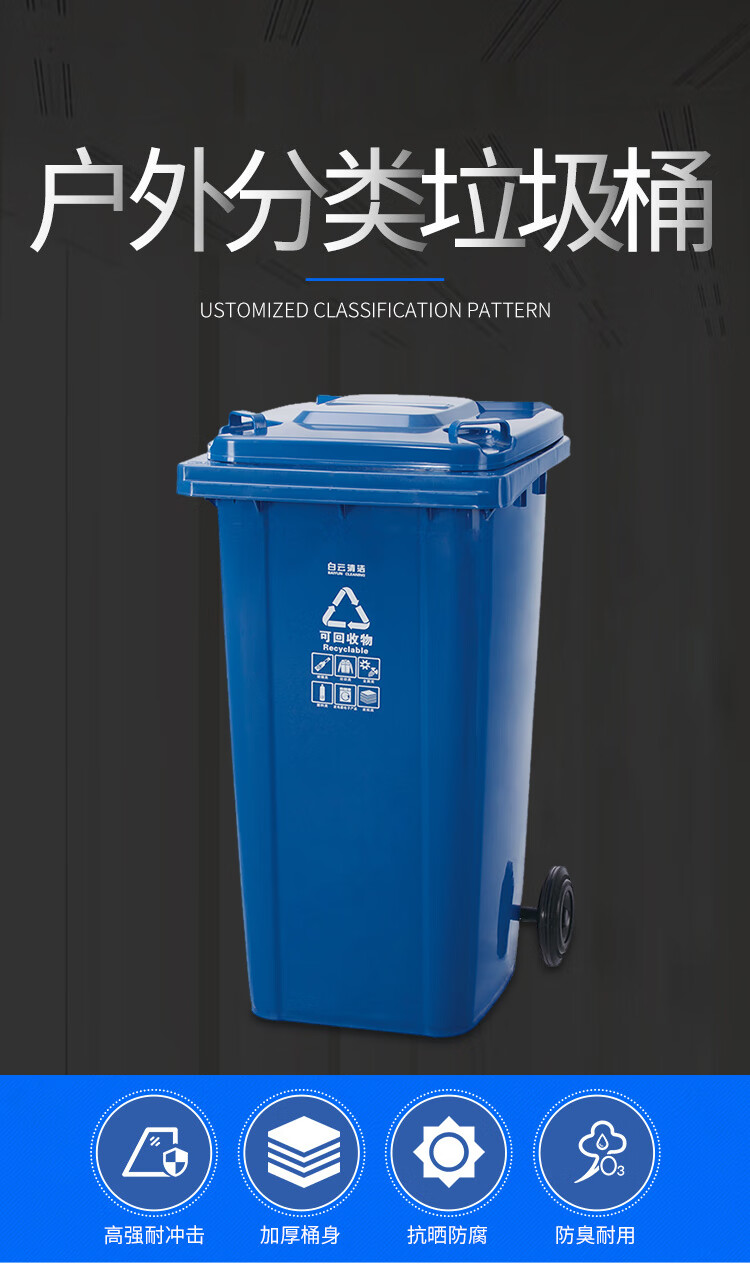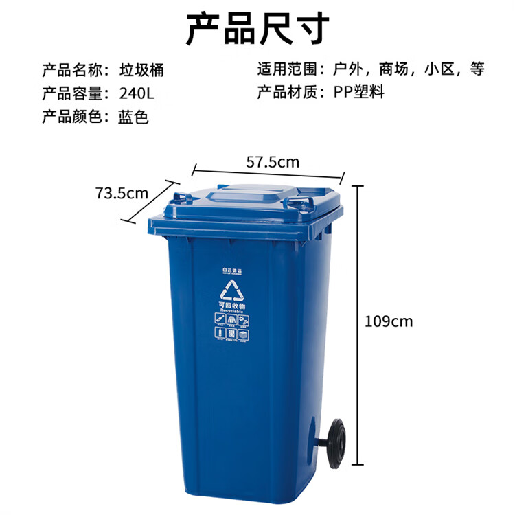 白云清洁 可挂车垃圾桶 AF07602 240L 蓝色 1个
