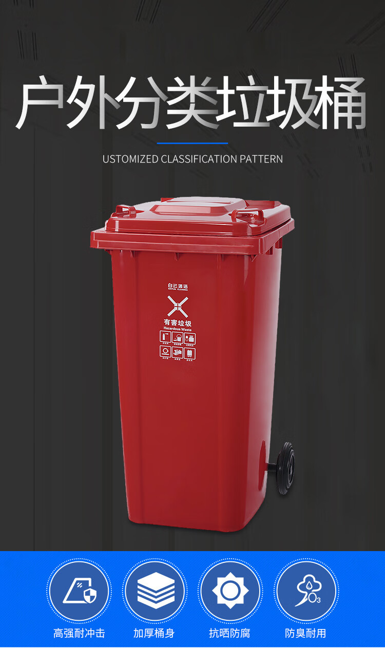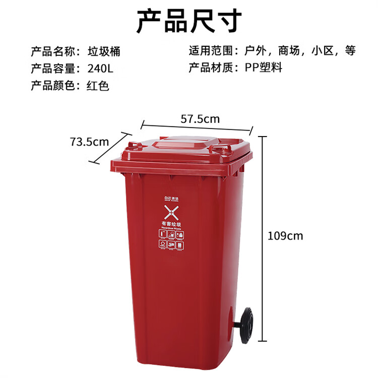 白云清洁 可挂车垃圾桶 AF07602 240L 红色 1个
