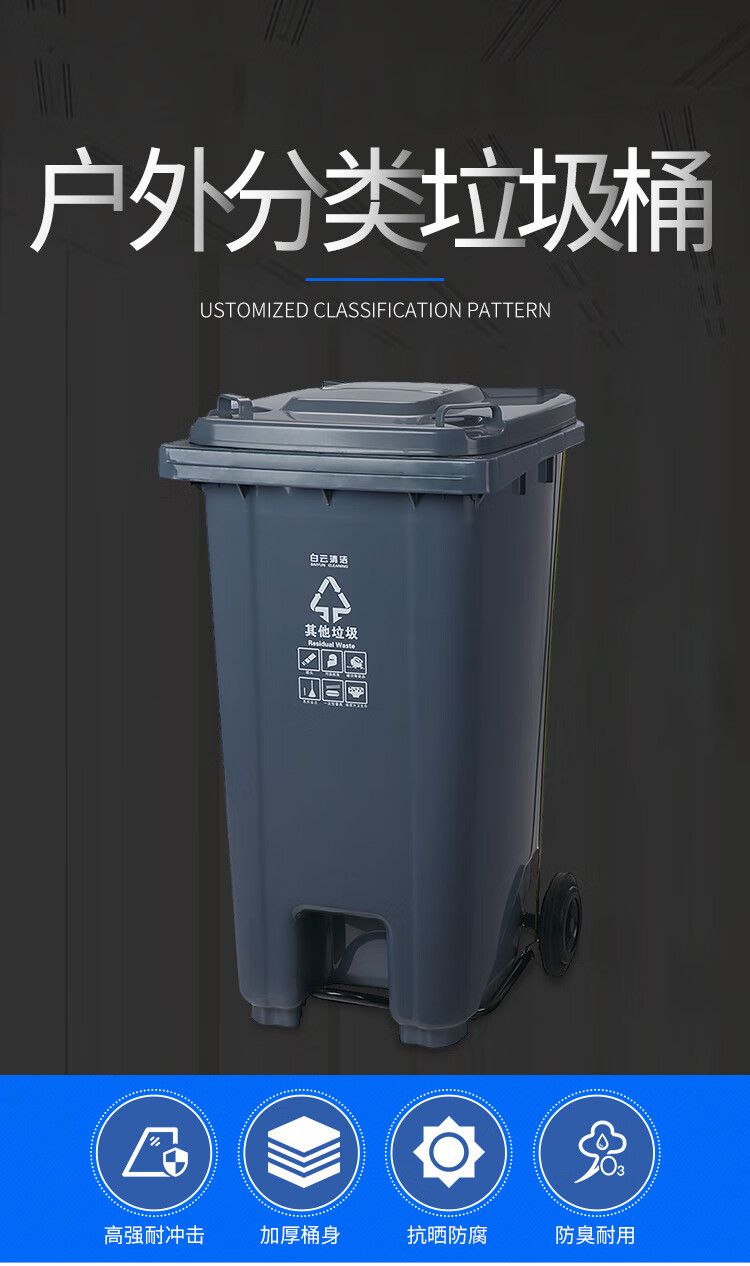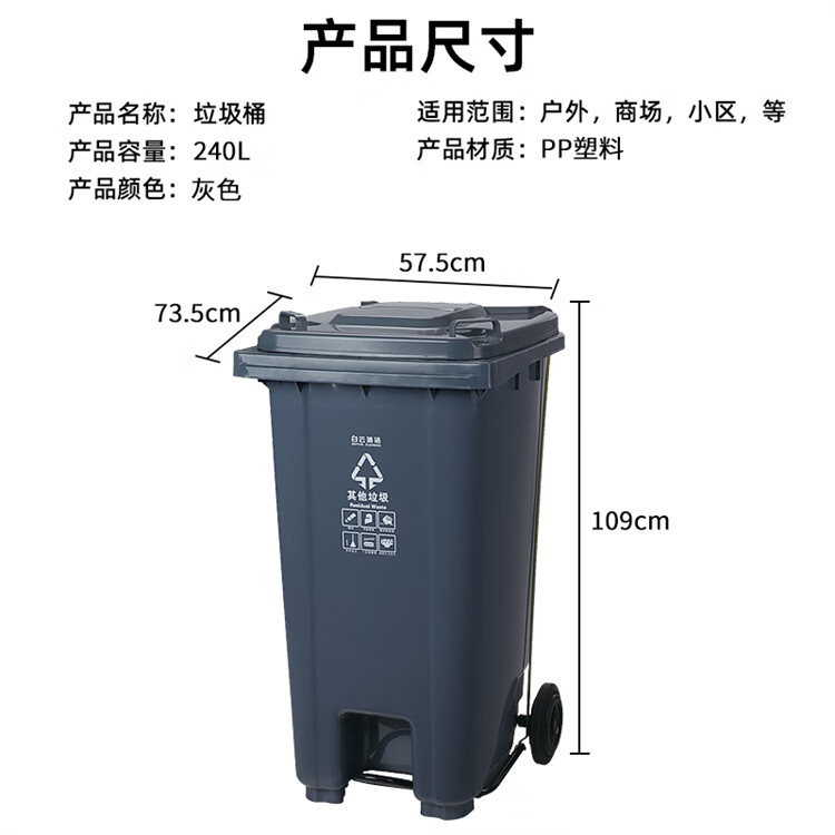 白云清洁 可挂车脚踏垃圾桶 AF07603 240L 灰色 1个