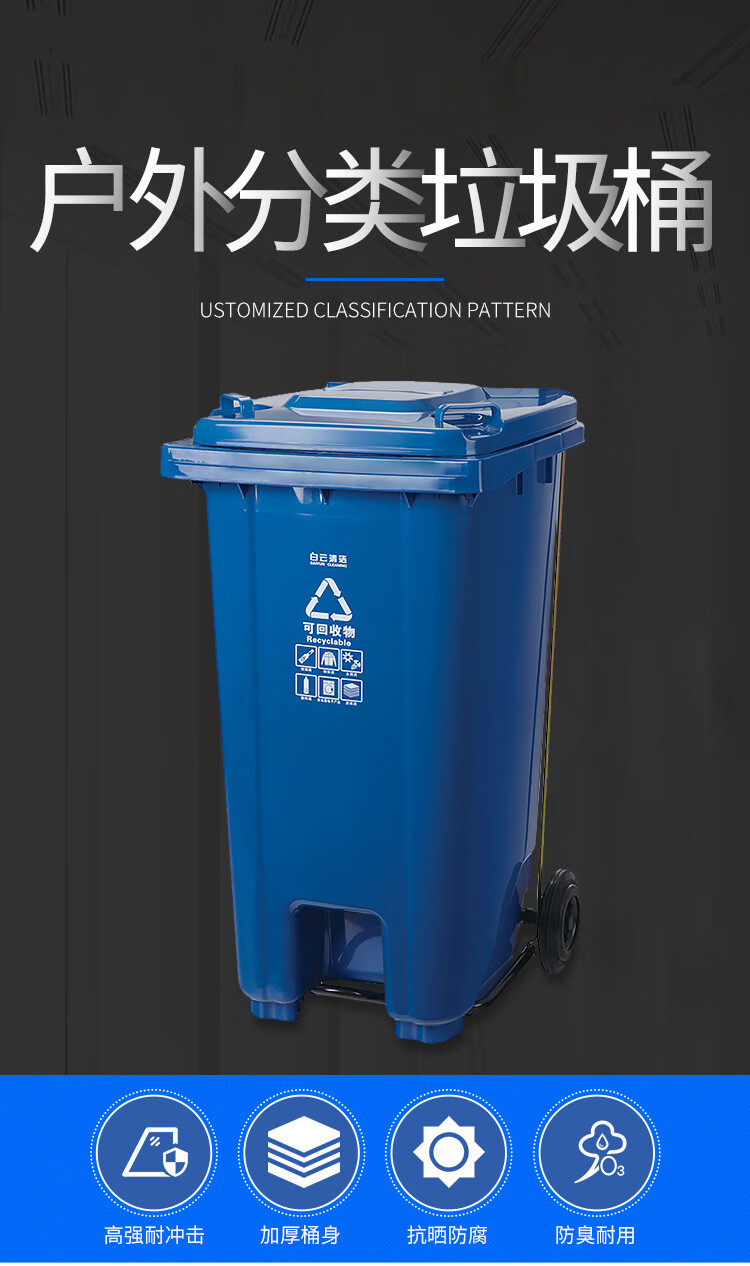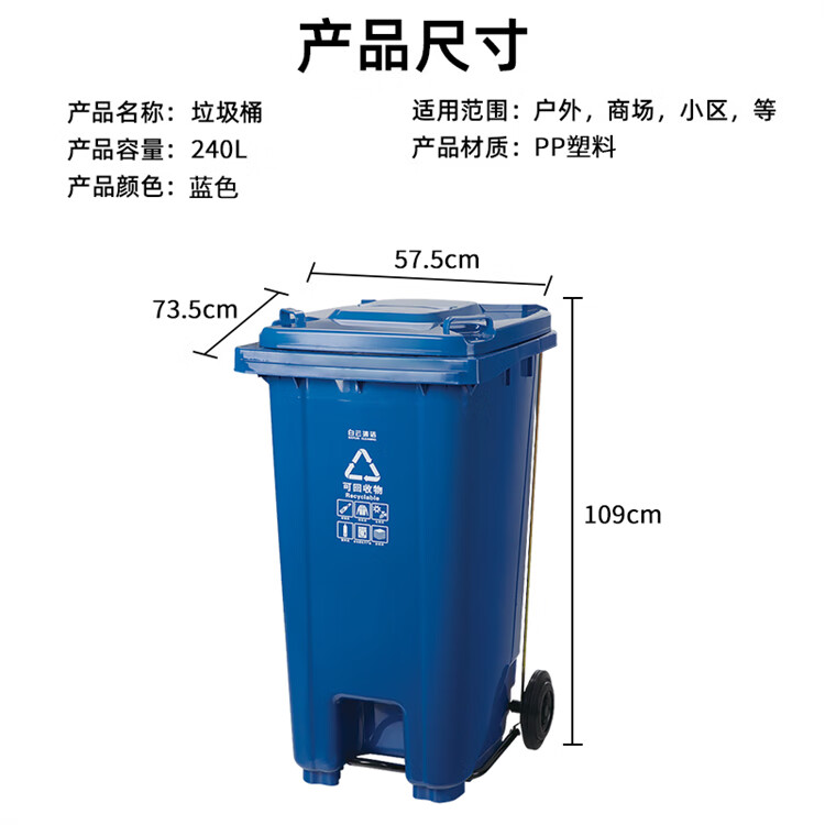 白云清洁 可挂车脚踏垃圾桶 AF07603 240L 蓝色 1个