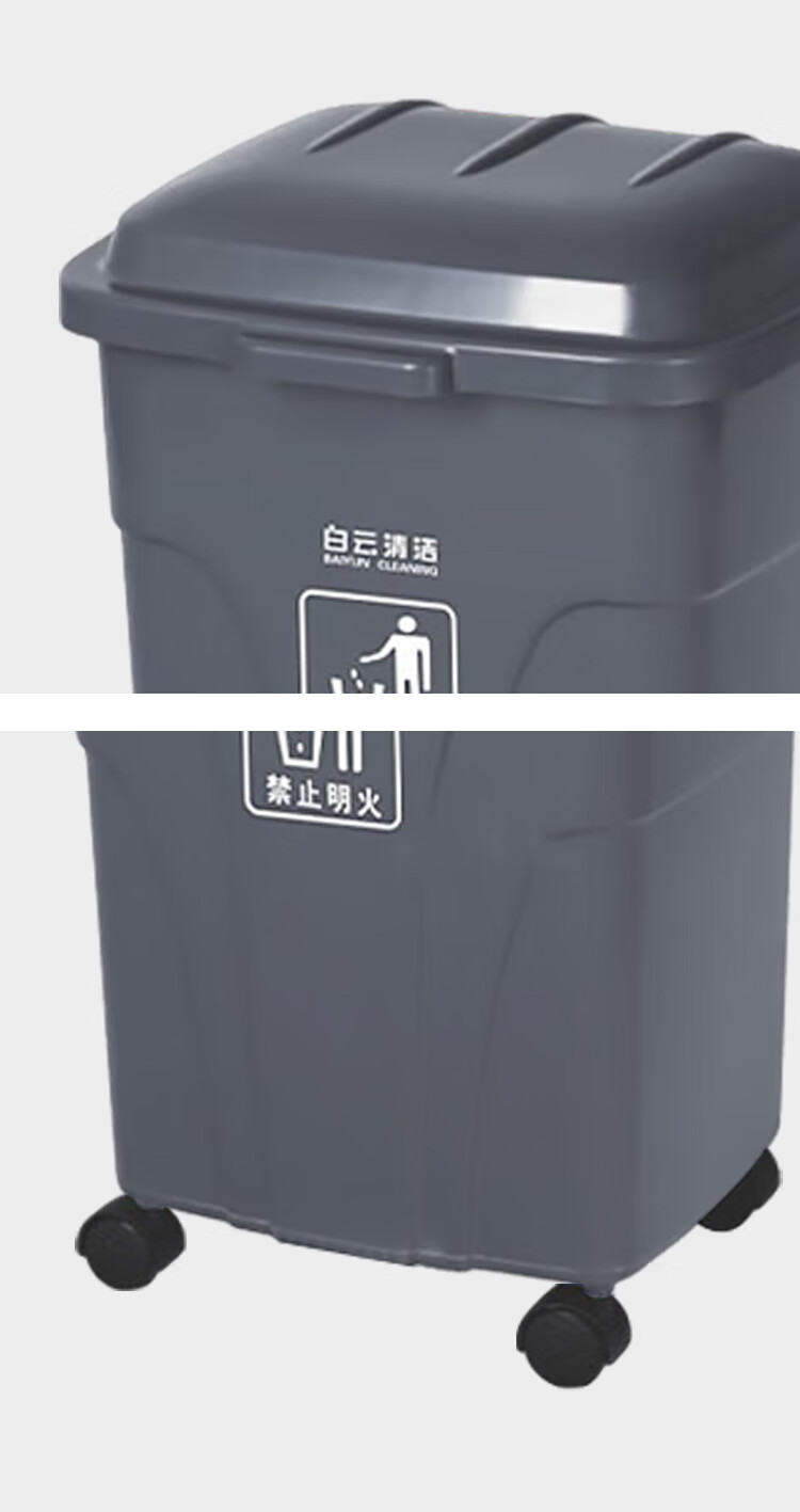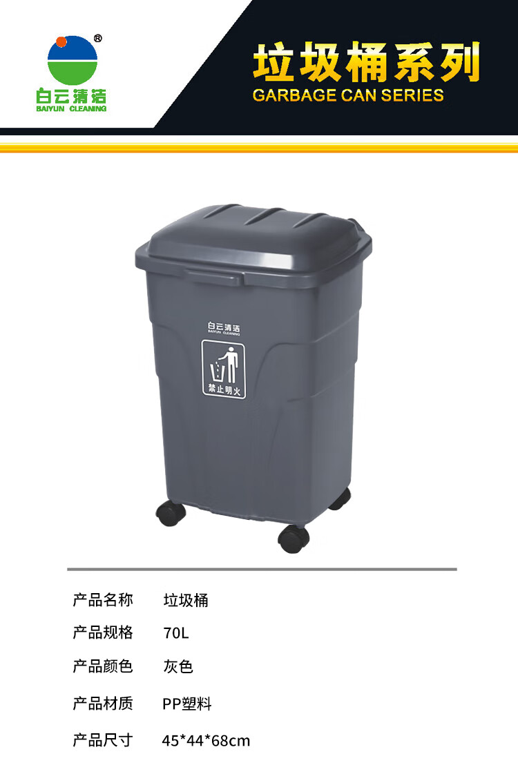 白云清洁 四轮垃圾桶 AF07301 灰色 70L 1个