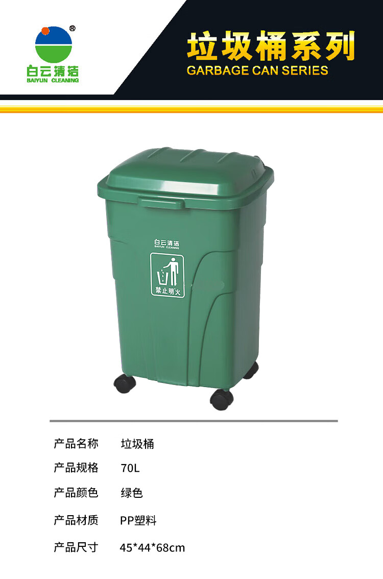 白云清洁 四轮垃圾桶 AF07301 绿色 70L 1个