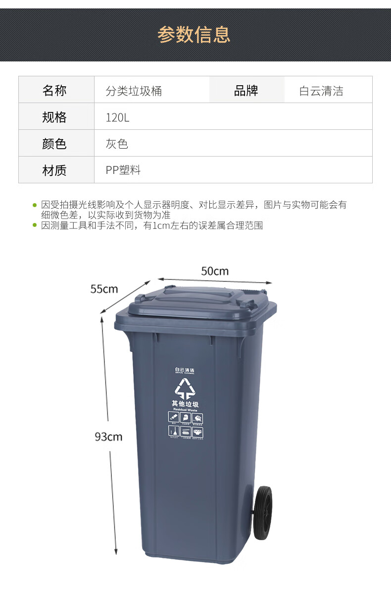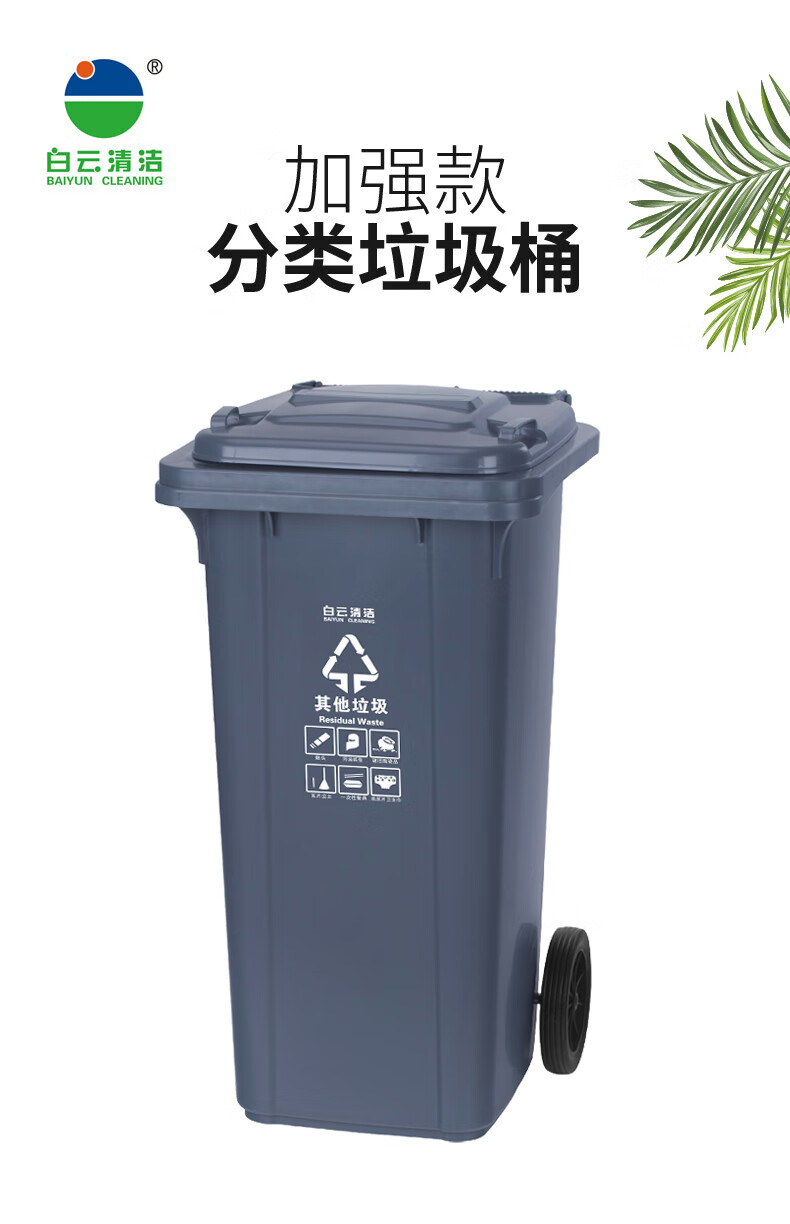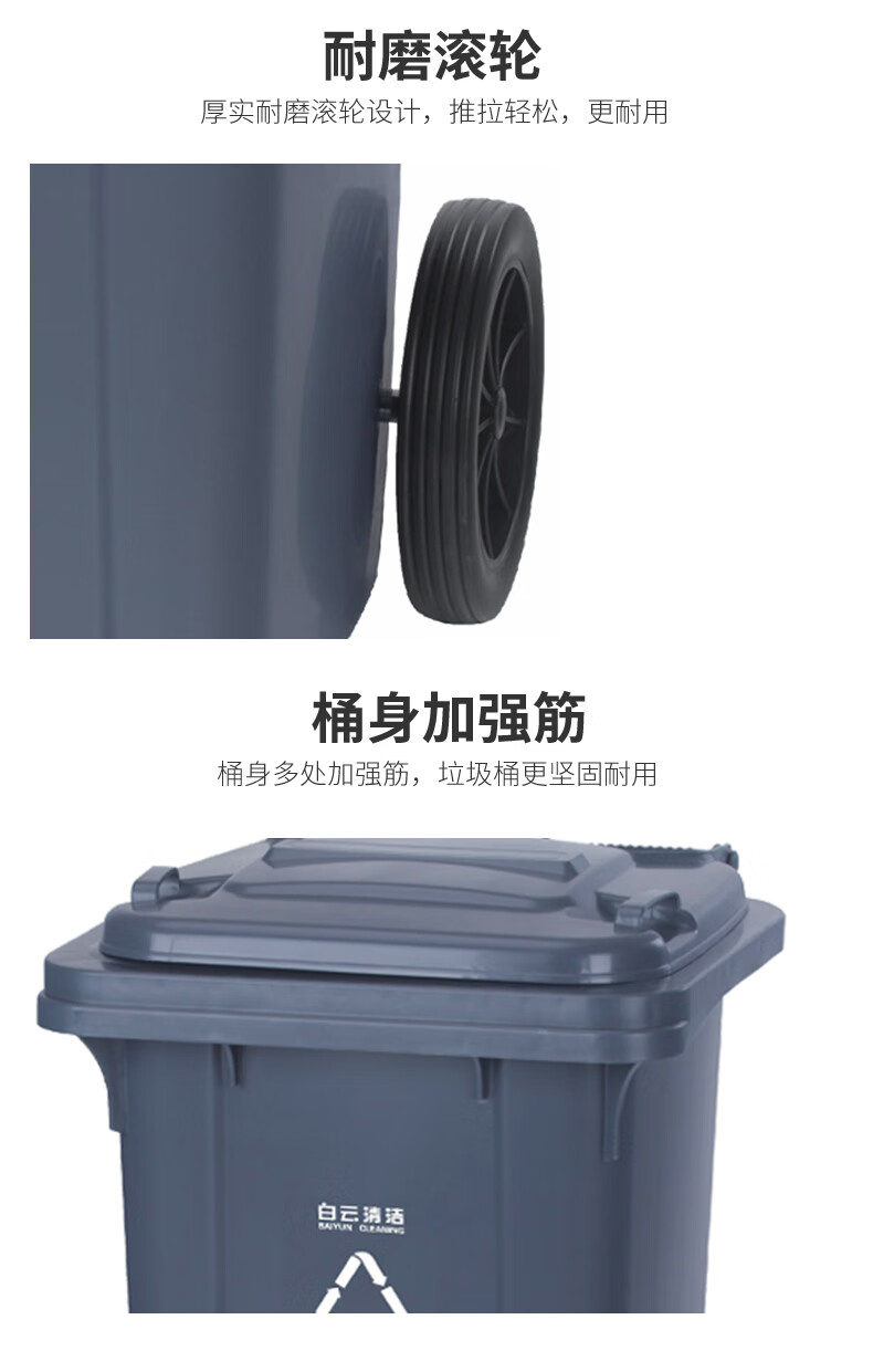 白云清洁 垃圾桶 AF07321 灰色120L 1个