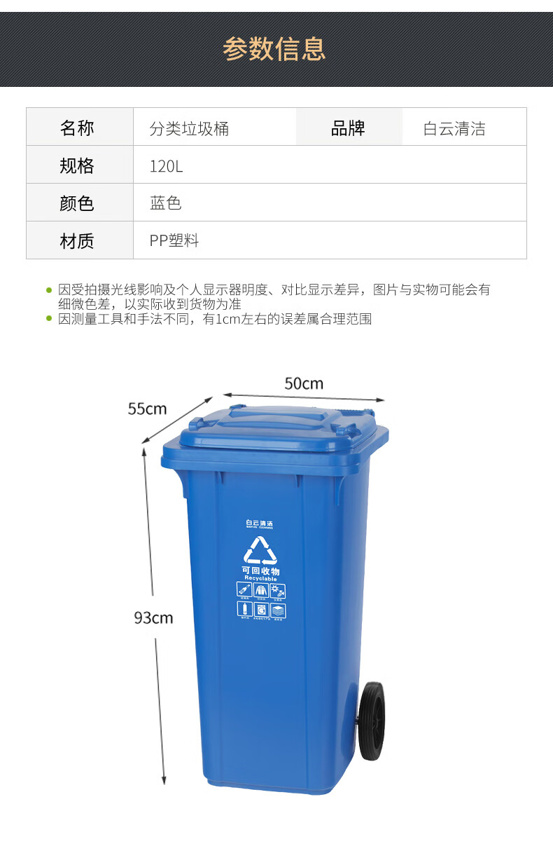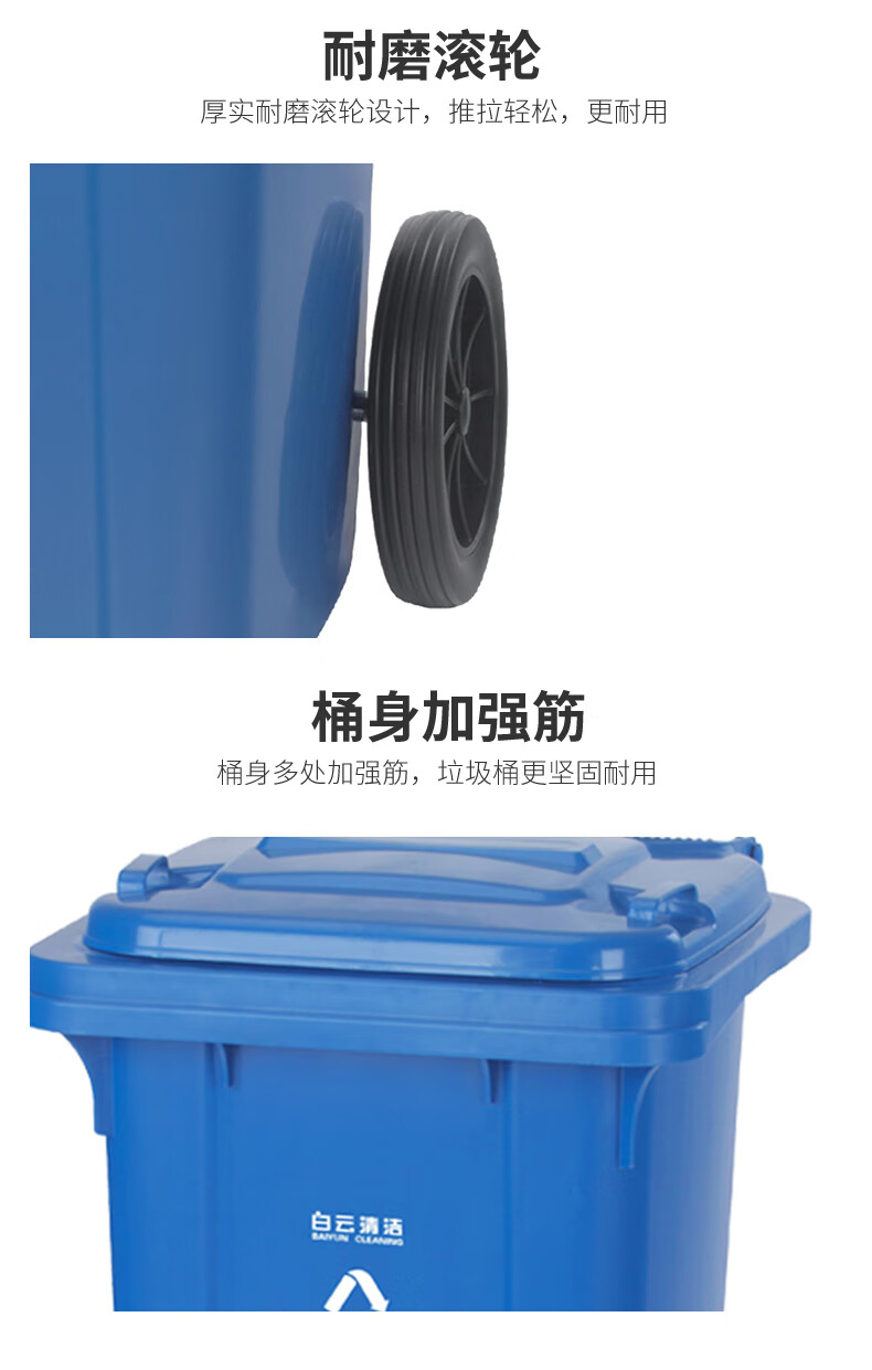白云清洁 垃圾桶 AF07321 蓝色120L 1个