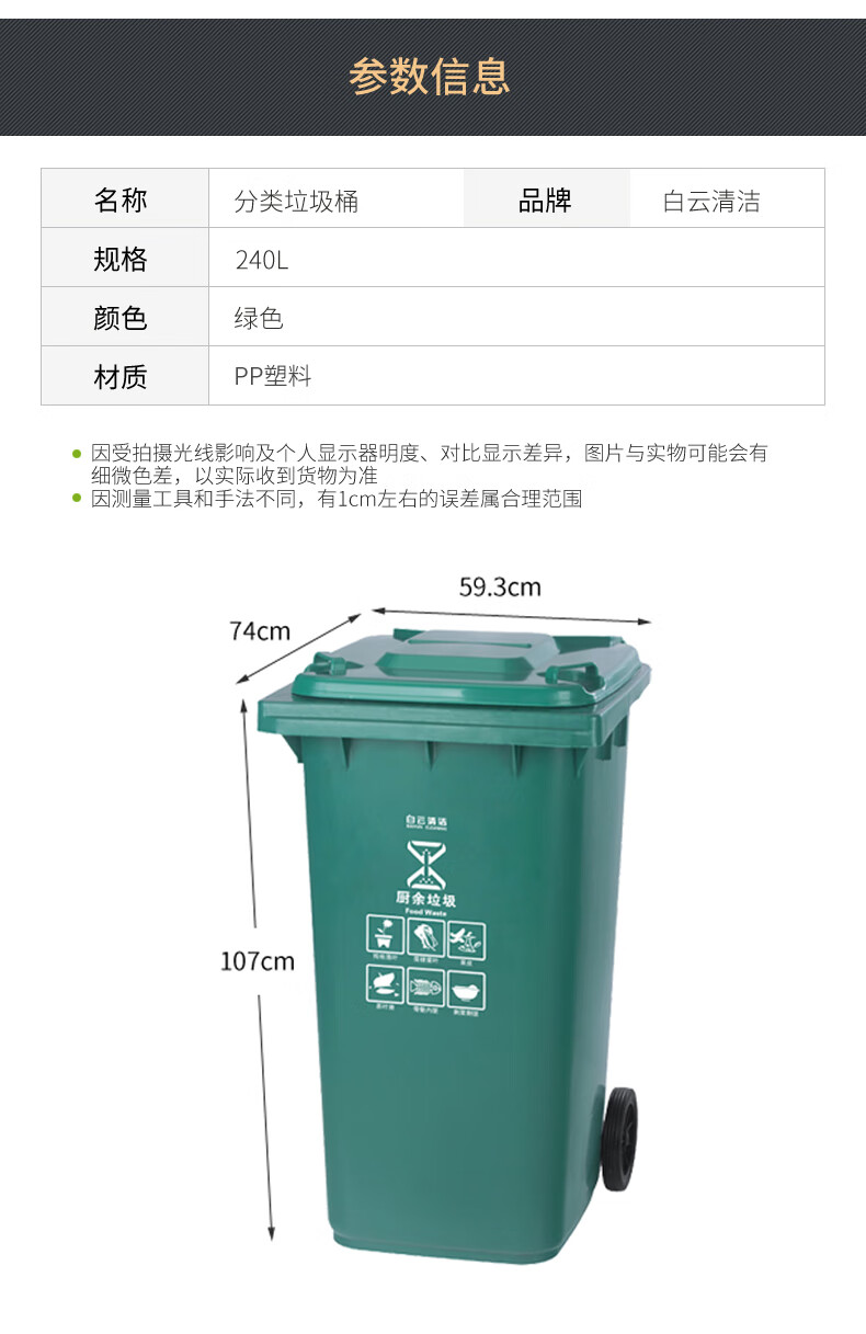 白云清洁 垃圾桶 AF07322 绿色240L 1个