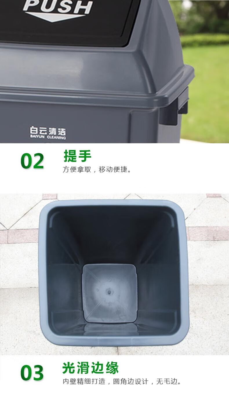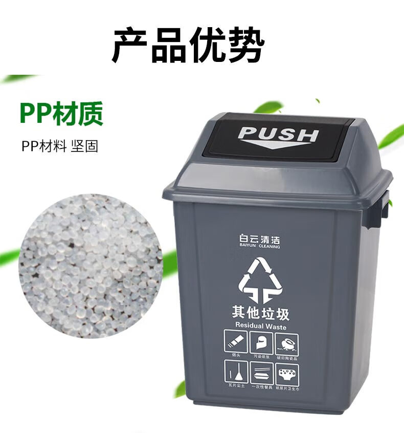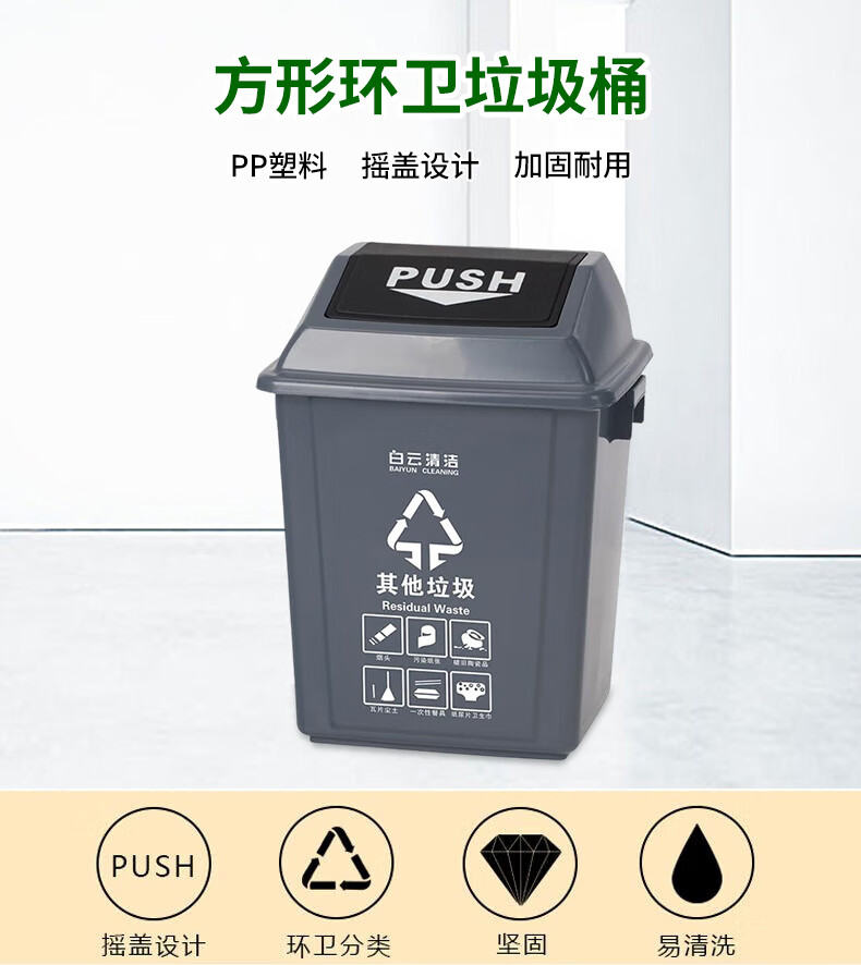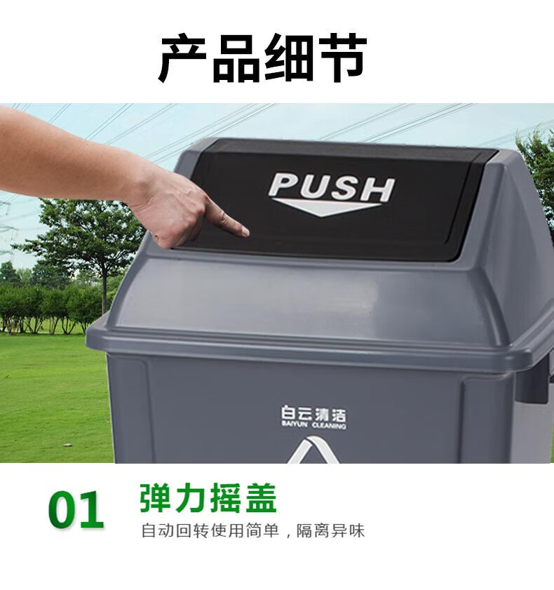 白云清洁 摇盖垃圾桶 AF07310 灰色25L 1个