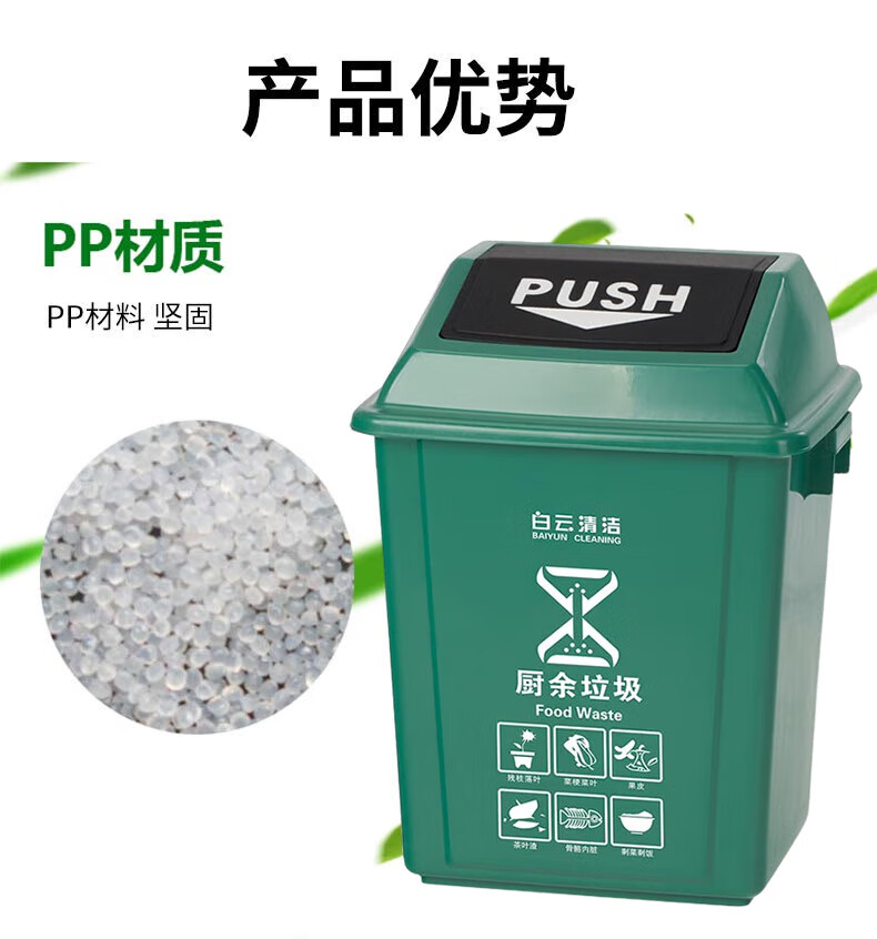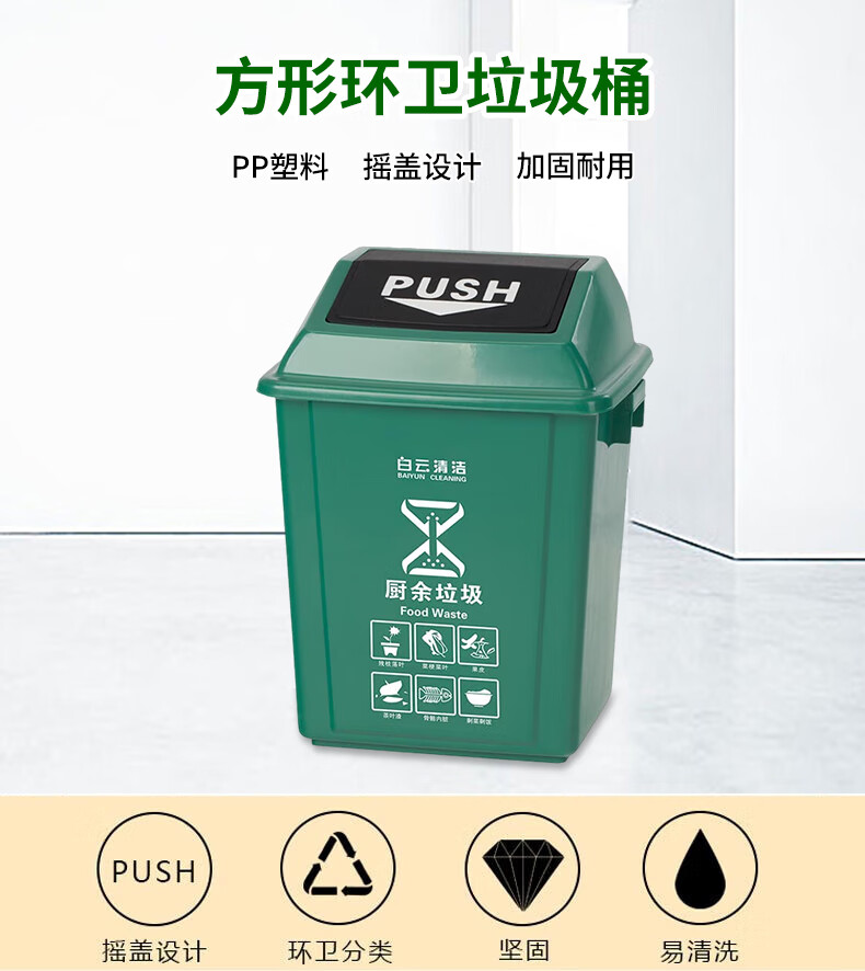 白云清洁 摇盖垃圾桶 AF07310 绿色25L 1个