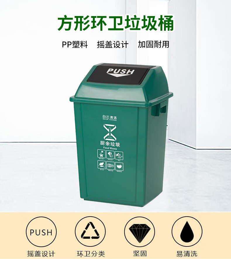白云清洁 摇盖垃圾桶 AF07311 绿色40L 1个
