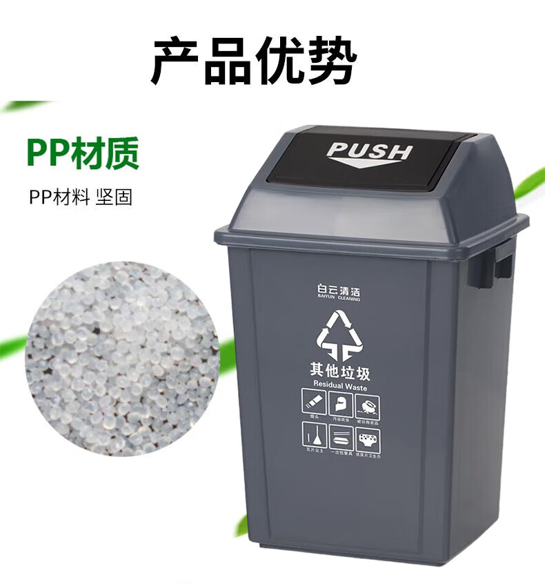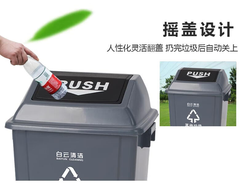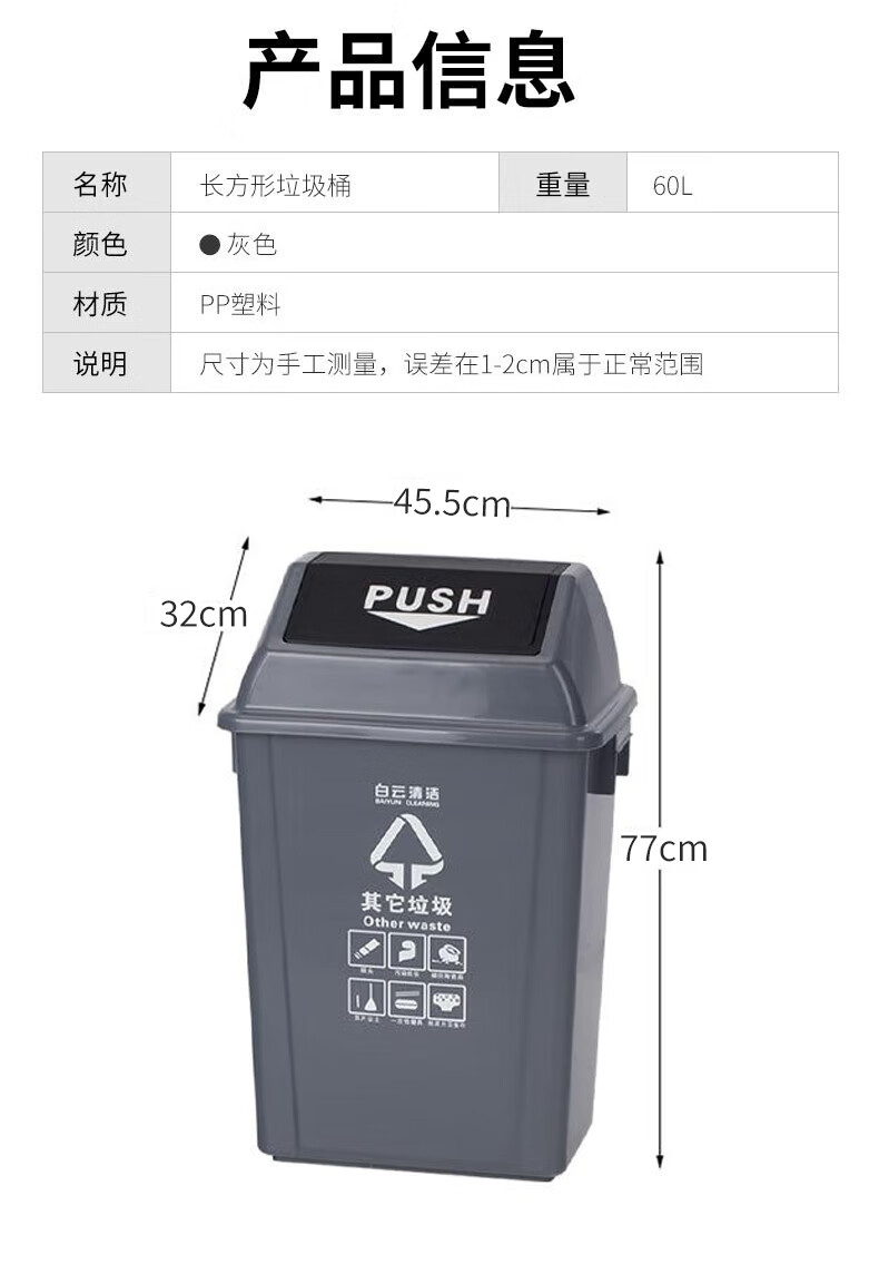 白云清洁 摇盖垃圾桶 AF07328 长方形 灰色60L 1个