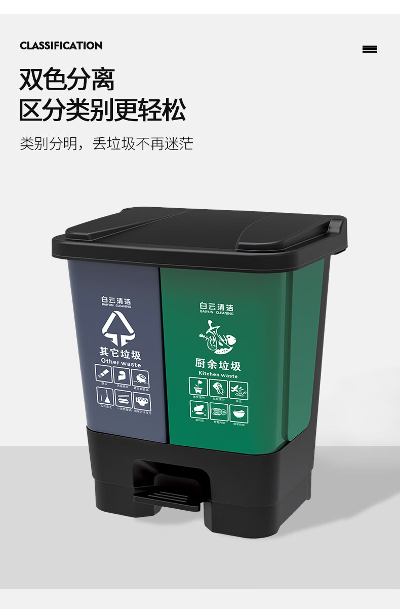 白云清洁 脚踏分类垃圾桶 AF07335 灰绿 20L 1个