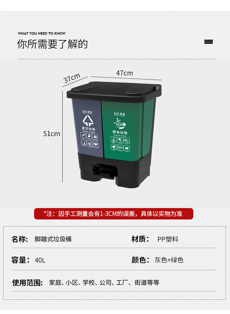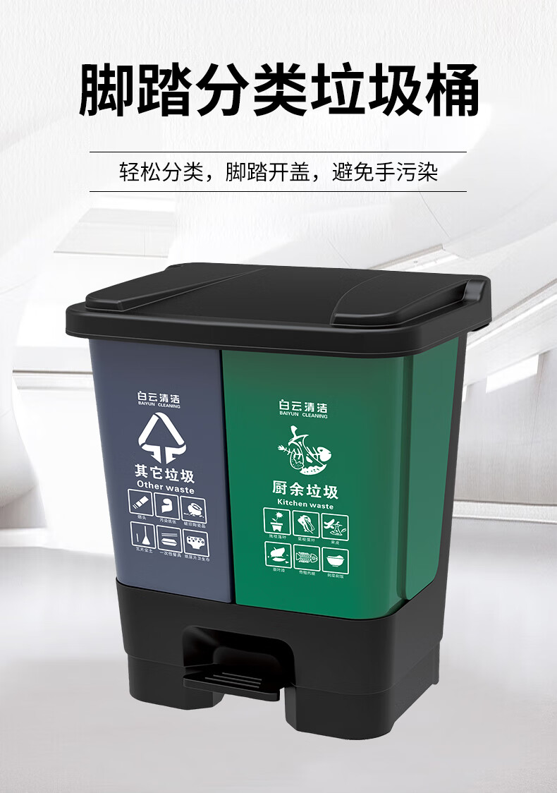 白云清洁 脚踏分类垃圾桶 AF07337 灰绿 40L 1个