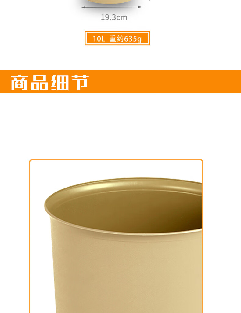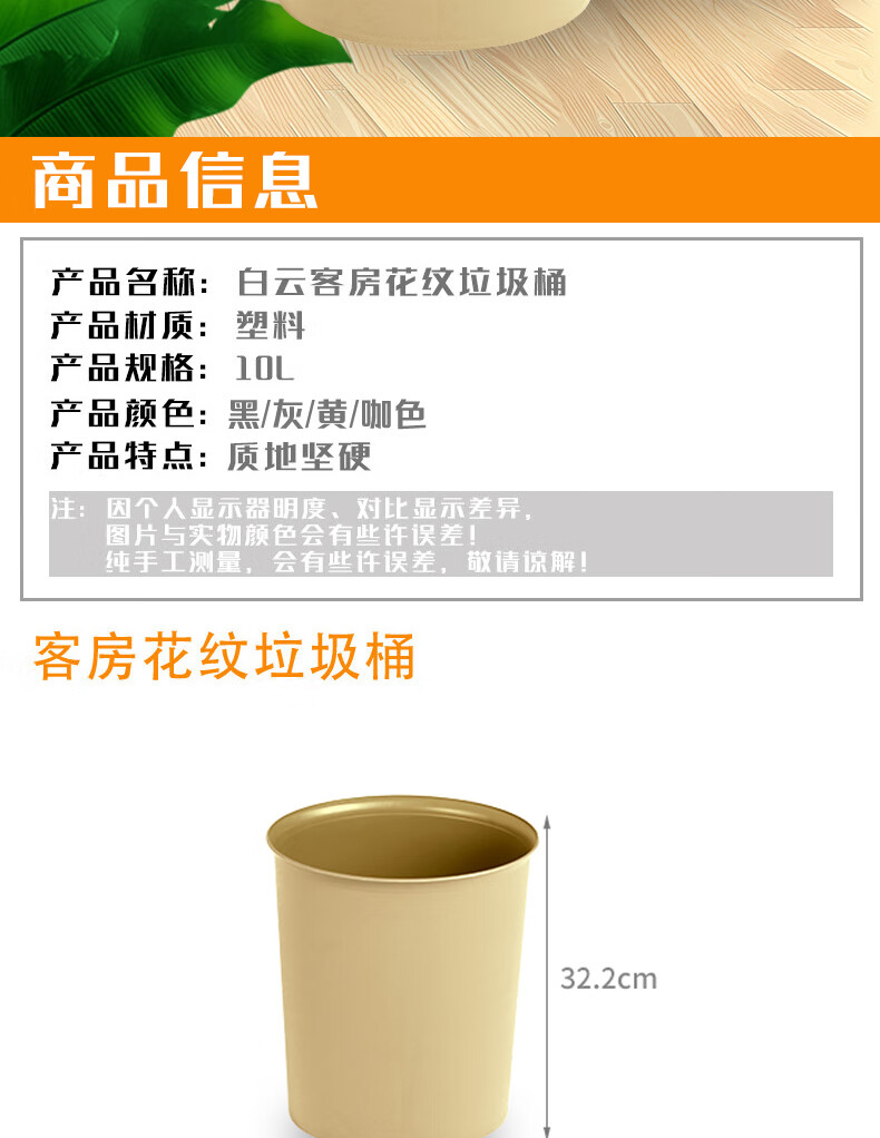 白云清洁 AF07011 酒店宾馆客房大号加厚垃圾篓五只装 10L 米黄色