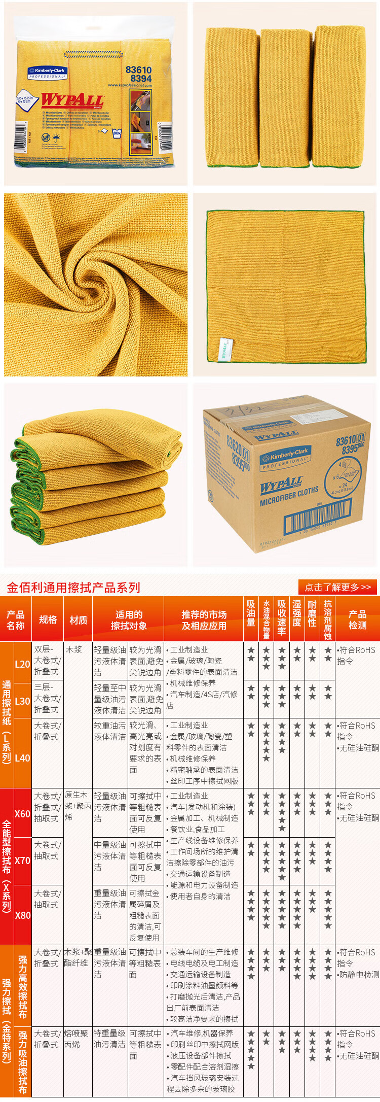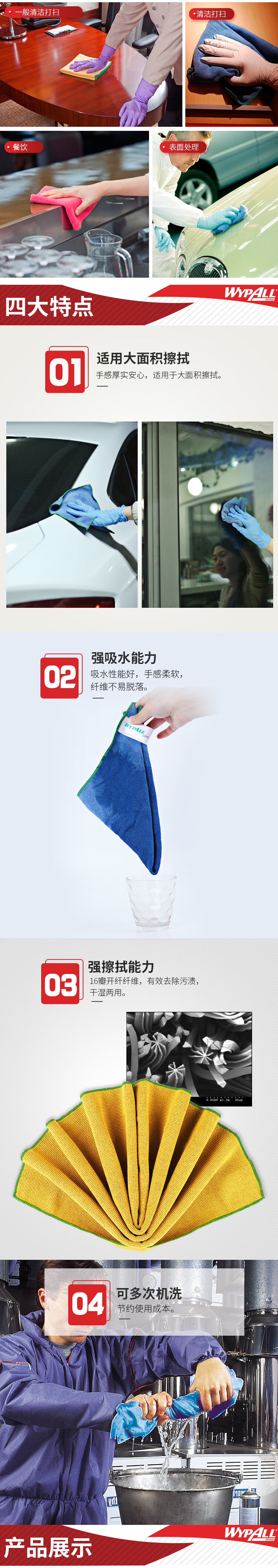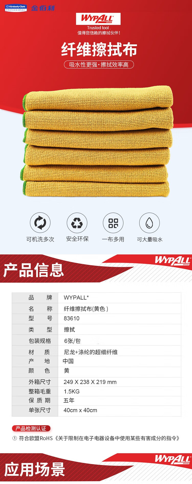 劲拭 (Wypall) 金佰利超细纤维布擦拭布 40×40cm 黄色 6张/包 4包/箱 83610