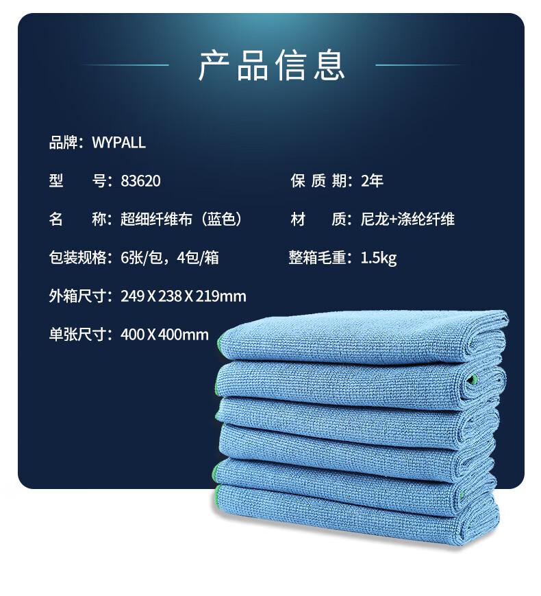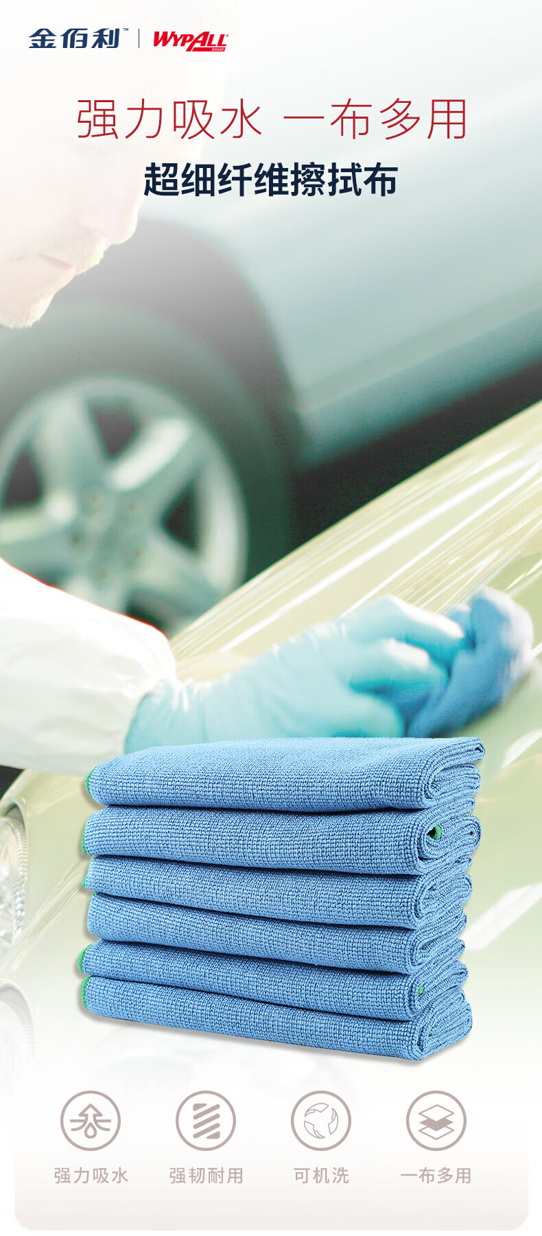 劲拭 (Wypall) 金佰利超细纤维布擦拭布 40×40cm 蓝色 6张/包 4包/箱 83620