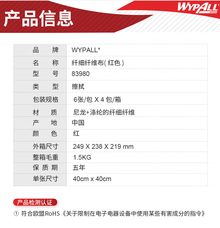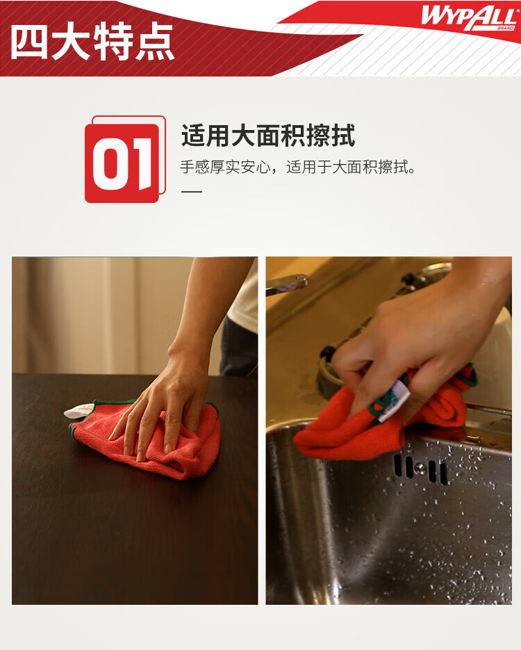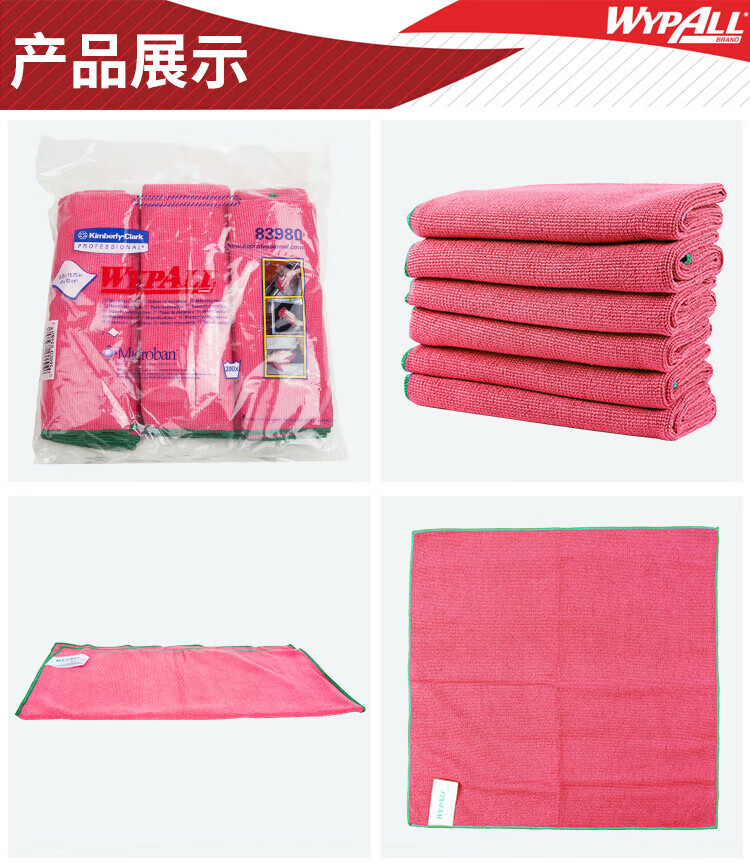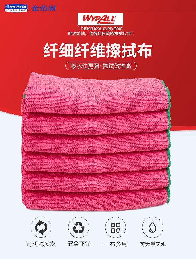 劲拭 (Wypall) 金佰利超细纤维布擦拭布 40×40cm 红色 6张/包 4包/箱 83980